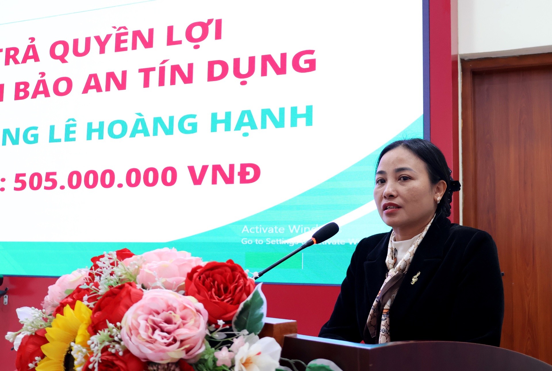 Bà Vũ Thị Mây - Phó Giám đốc Agribank Chi nhánh Lai Châu phát biểu tại buổi chi trả.