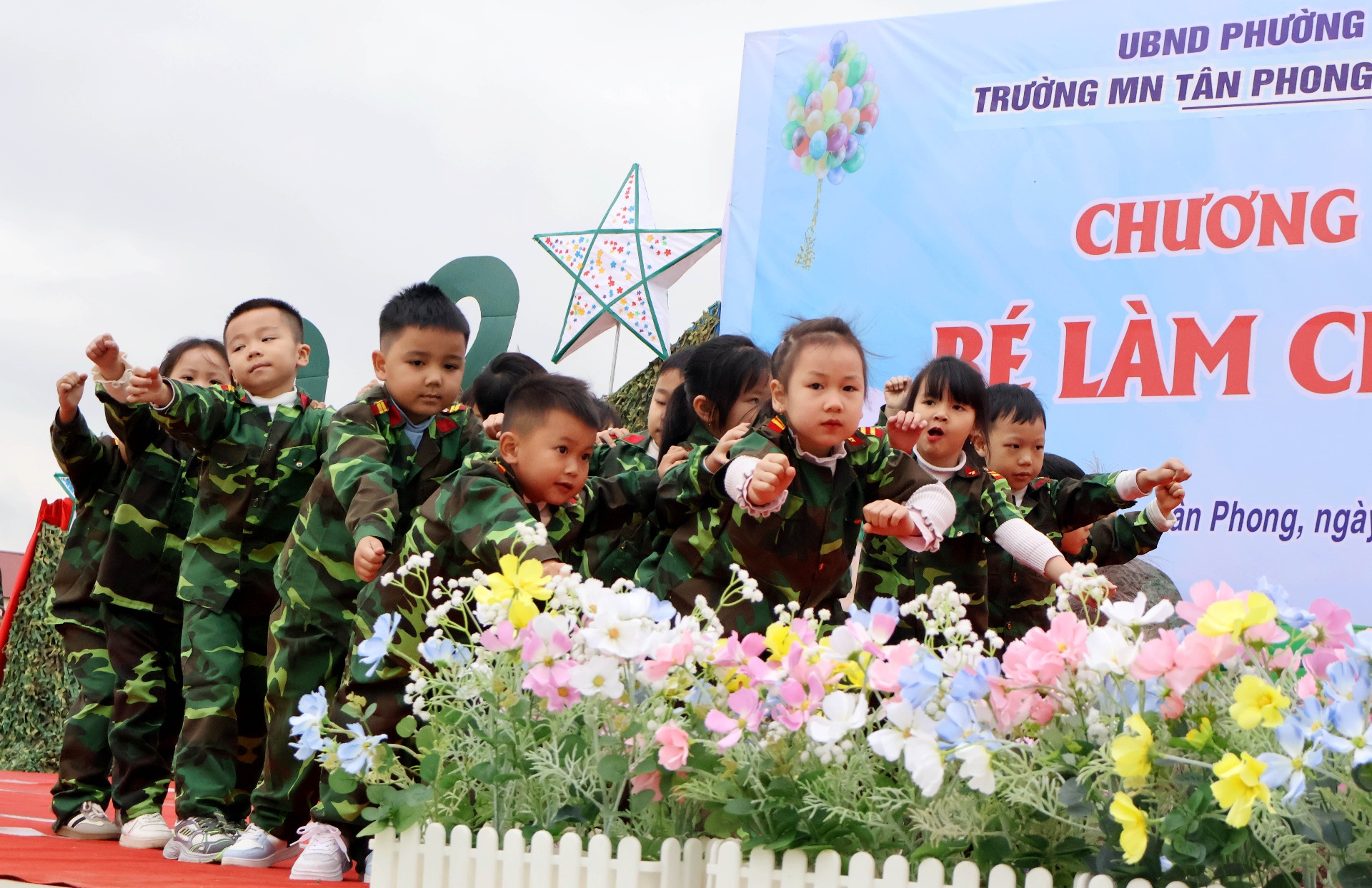 Trong khuôn khổ chương trình, các bé được tham gia nhiều hoạt động sinh động như: nghe tuyên truyền về ý nghĩa Ngày thành lập Quân đội nhân dân Việt Nam 22/12; xem các chiến sĩ luyện tập thể lực; trải nghiệm xếp hình lá cờ Tổ quốc và nhập vai “chiến sĩ nhí” trong trang phục bộ đội và tham gia các tiết mục văn nghệ, đồng diễn.