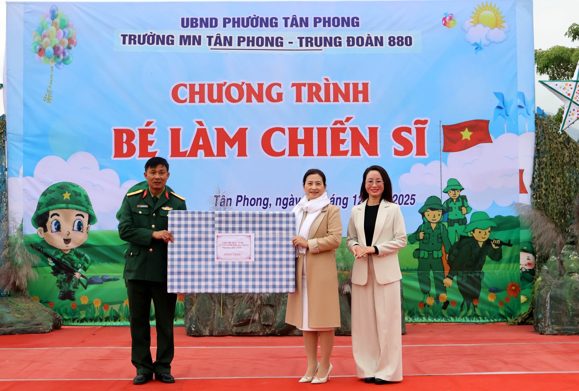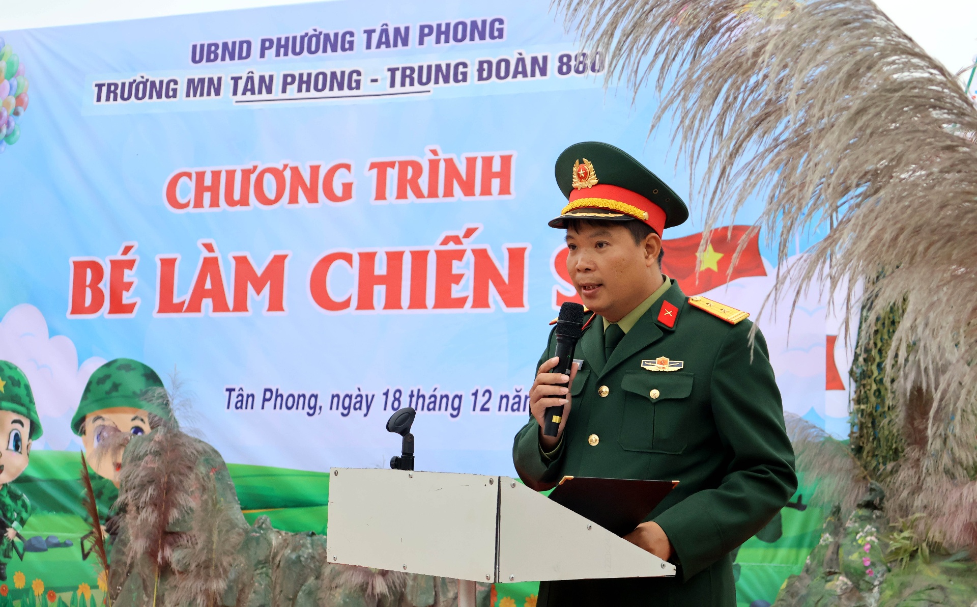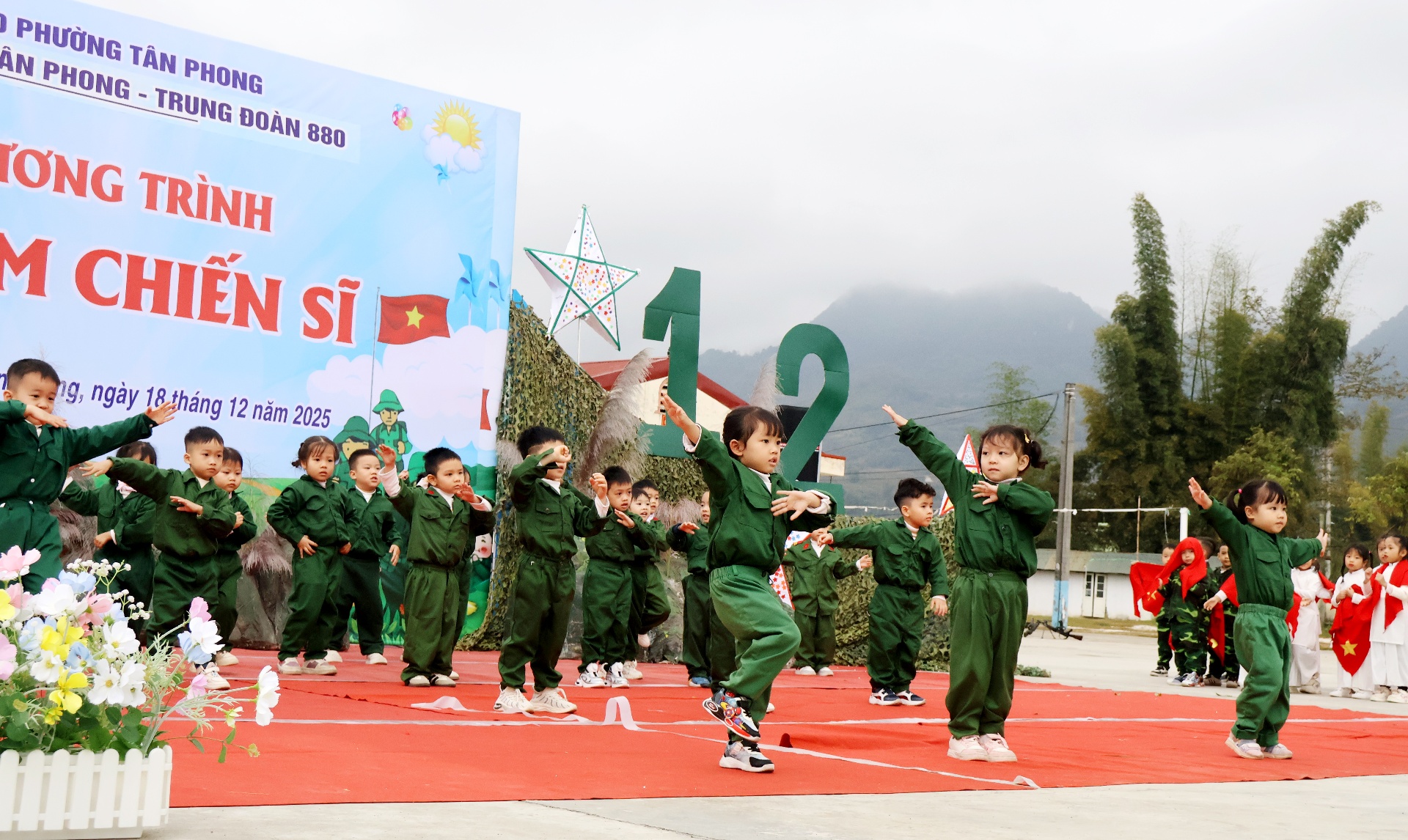 Nhân dịp kỷ niệm 81 năm Ngày thành lập Quân đội nhân dân Việt Nam (22/12/1944 – 22/12/2025), sáng 18/12, Trường Mầm non Tân Phong (phường Tân Phong) phối hợp với Trung đoàn 880 (Bộ Chỉ huy Quân sự tỉnh) tổ chức hoạt động tham quan, trải nghiệm với chủ đề “Bé tập làm chiến sĩ” tại Trung đoàn 880.