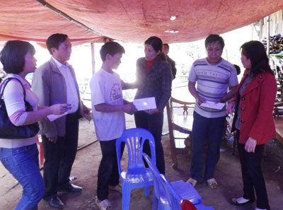 Đại diện Quỹ tấm lòng vàng (Báo Lao Động) hỗ trợ cho các gia đình có nạn nhân tử vong.