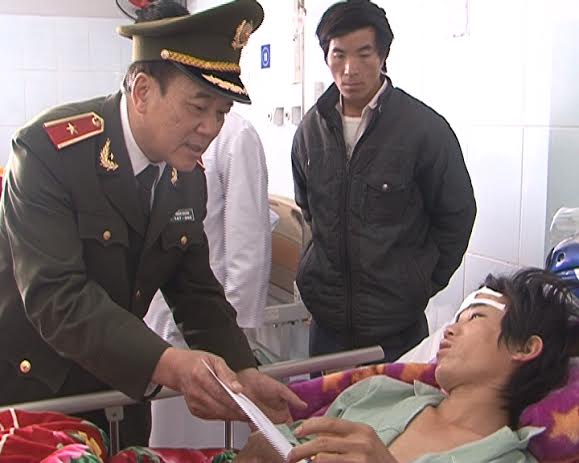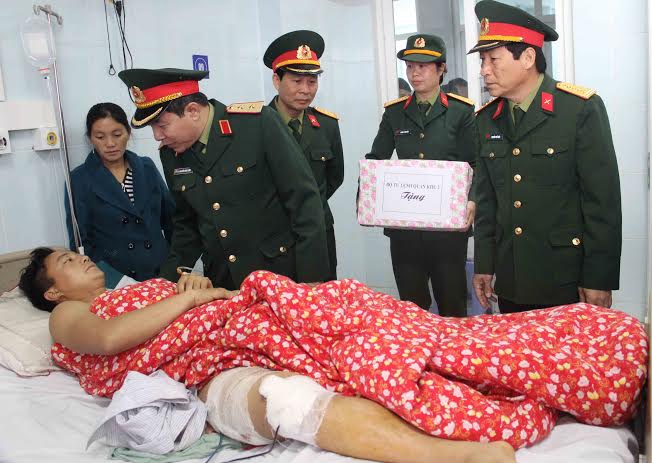 Thừa ủy quyền lãnh đạo Bộ Công an,thiếu tướng Trần Duân – Ủy viên Ban Thường vụ Tỉnh ủy, Giám đốc Công an tỉnh thăm, tặng quà cho bệnh nhân bị thương trong vụ sập cầu treo.