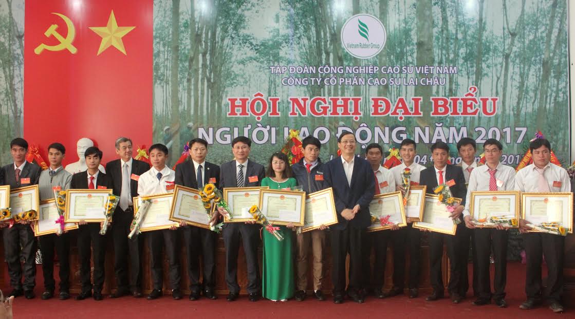 Nhân dịp này, Tập đoàn Công nghiệp Cao su Việt Nam trao tặng danh hiệu Tập thể lao động xuất sắc cho 9 tập thể; tặng Bằng khen cho 25 cá nhân; Liên đoàn Lao động tỉnh tặng Bằng khen cho 8 cá nhân thuộc Công ty Cổ phần Cao su Lai Châu đã có thành tích xuất sắc trong sản xuất kinh doanh và hoạt động Công đoàn năm 2016.