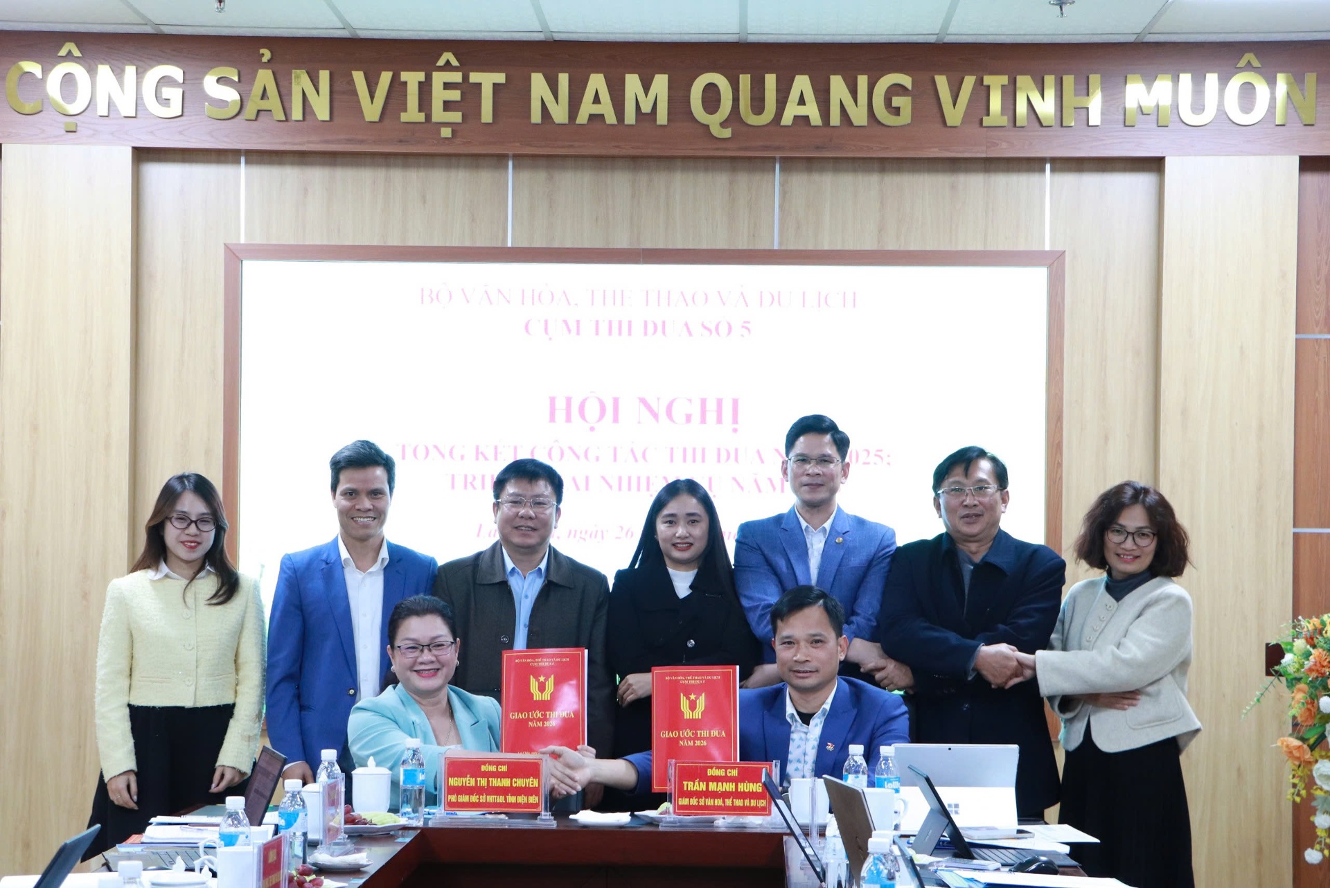 Tại hội nghị, Cụm thi đua số 5 đã suy tôn Sở VHTT&DL tỉnh Điện Biên nhận Cờ thi đua của Bộ VHTT&DL vì có thành tích tiêu biểu xuất sắc dẫn đầu phong trào thi đua của cụm thi đua. Sở VHTT&DL tỉnh Sơn La nhận Bằng khen của Bộ VHTT&DL cho các tập thể thuộc cụm thi đua có thành tích xuất sắc trong phong trào thi đua của cụm thi đua. Hội nghị thống nhất giới thiệu Sở VHTT&DL tỉnh Điện Biên là đơn vị cụm trưởng năm 2026. Các đơn vị ký giao ước thi đua năm 2026 với phương châm hành động: “Đổi mới tư duy, kiến tạo phát triển, quyết tâm hành động, gương mẫu đi đầu, tận tâm cống hiến, vì dân phục vụ”.