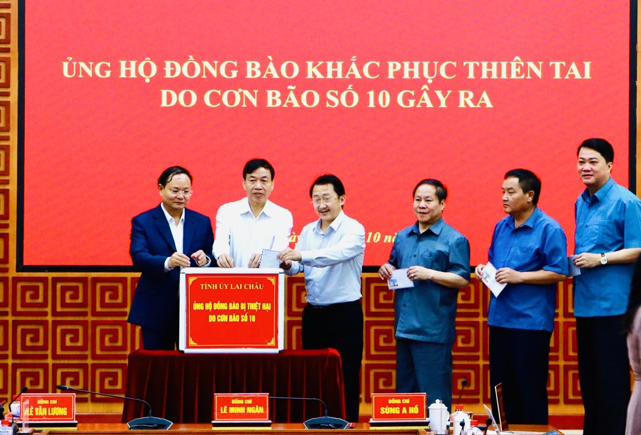 Các đồng chí Lãnh đạo tỉnh Lai Châu ủng hộ đồng bào các tỉnh bị ảnh hưởng bởi thiên tai, mưa lũ.