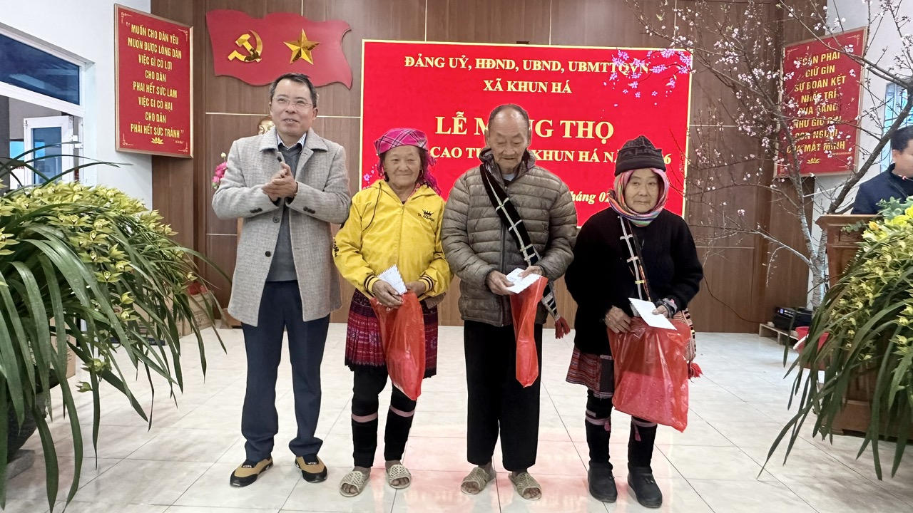 Tại buổi lễ, lãnh đạo xã Khun Há đã ân cần thăm hỏi sức khỏe, bày tỏ lòng tri ân sâu sắc đối với những đóng góp của các cụ cao tuổi trong sự nghiệp xây dựng và phát triển quê hương. Đồng thời, mong muốn các cụ tiếp tục sống vui, sống khỏe, là chỗ dựa tinh thần, tấm gương sáng cho con cháu và cộng đồng. Nhân dịp này, Ngân hàng VietinBank đã trao quà cho 13 người cao tuổi có hoàn cảnh khó khăn trên địa bàn xã.