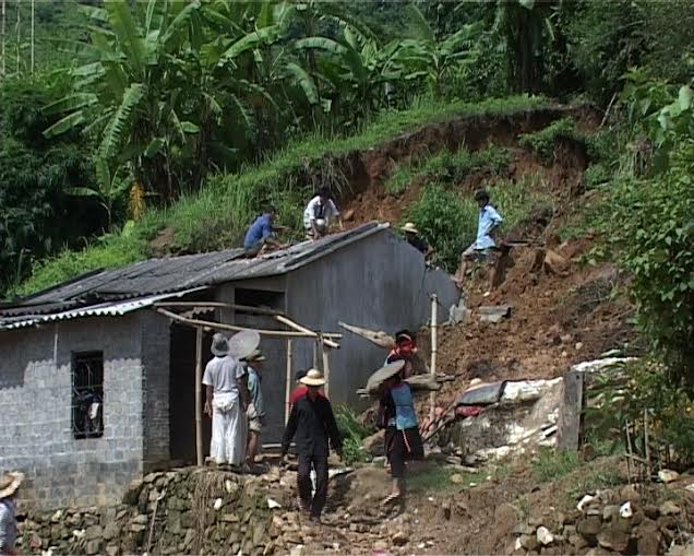 Đất sạt lở gây thiệt hại nhà của người dân tại bản Giao Chản (xã Bản Lang, huyện Phong Thổ). Ảnh: Minh Tuấn