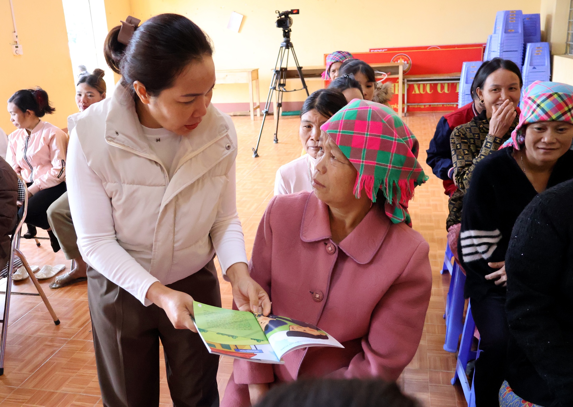 Hội LHPN xã còn kết hợp với cán bộ trạm y tế xã lồng ghép tuyên truyền về xây dựng môi trường sống an toàn cho phụ nữ và trẻ em; xóa bỏ sinh con tại nhà; Luật Hôn nhân và gia đình… với nhiều câu chuyện và ví dụ điển hình đã xảy ra tại các thôn để cảnh báo cho các gia đình.