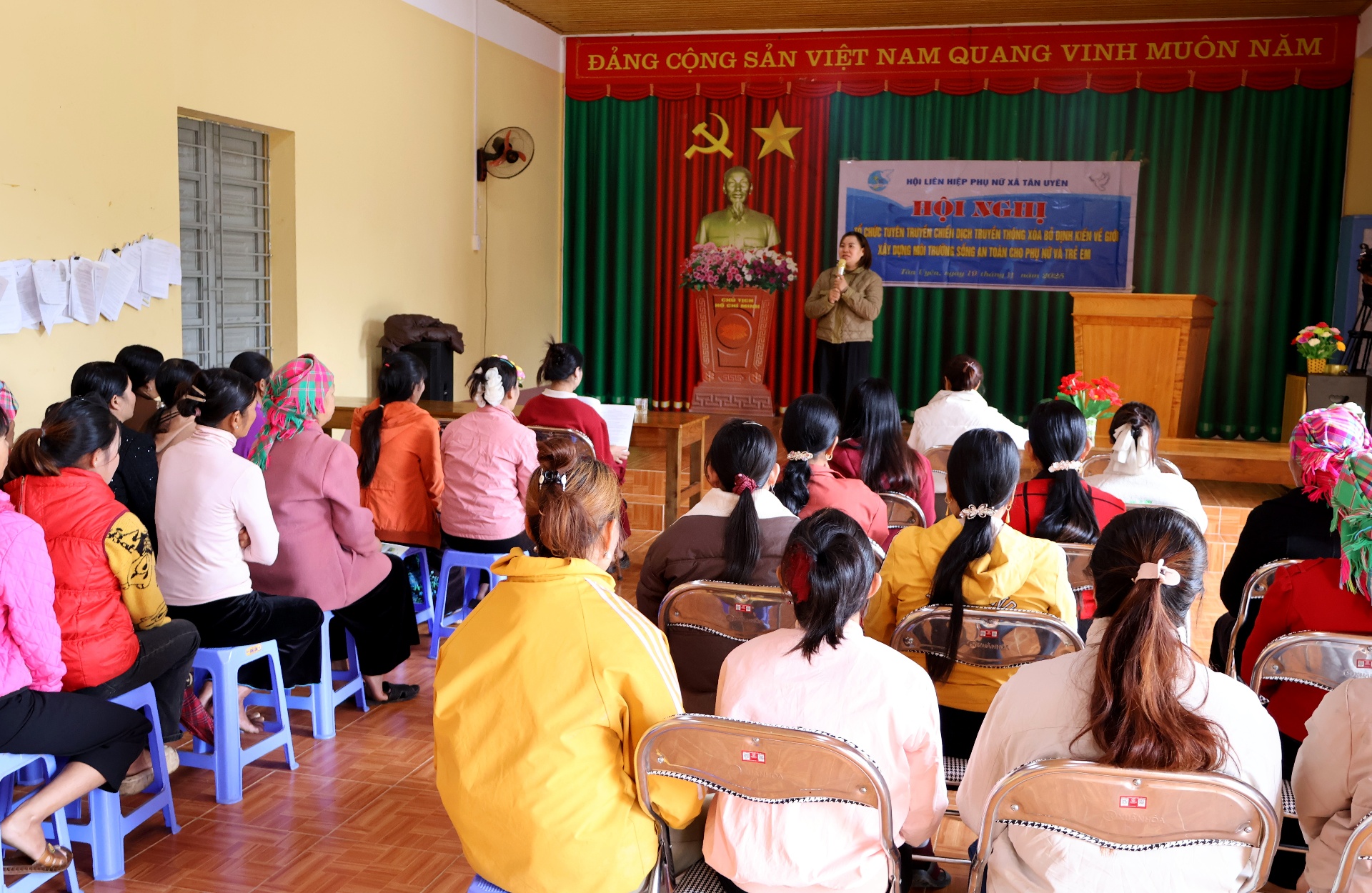 Thực hiện Kế hoạch tuyên truyền của Hội Liên hiệp Phụ nữ (LHPN) xã Tân Uyên theo Dự án 8 thuộc Chương trình mục tiêu quốc gia, từ ngày 7 - 15/11 vừa qua, Hội LHPN xã Tân Uyên đã tổ chức liên tiếp 7 lớp tuyên truyền tại 7 thôn với hơn 400 người tham gia, thu hút đông đảo hội viên phụ nữ, thanh niên và cả nam giới tham gia. Nội dung tập trung vào: bình đẳng giới, phòng chống bạo lực gia đình, xóa bỏ tư tưởng trọng nam khinh nữ, chăm sóc sức khỏe sinh sản vị thành niên - thanh niên, tác hại của tảo hôn và kết hôn cận huyết, kỹ năng số, kỹ năng sống…