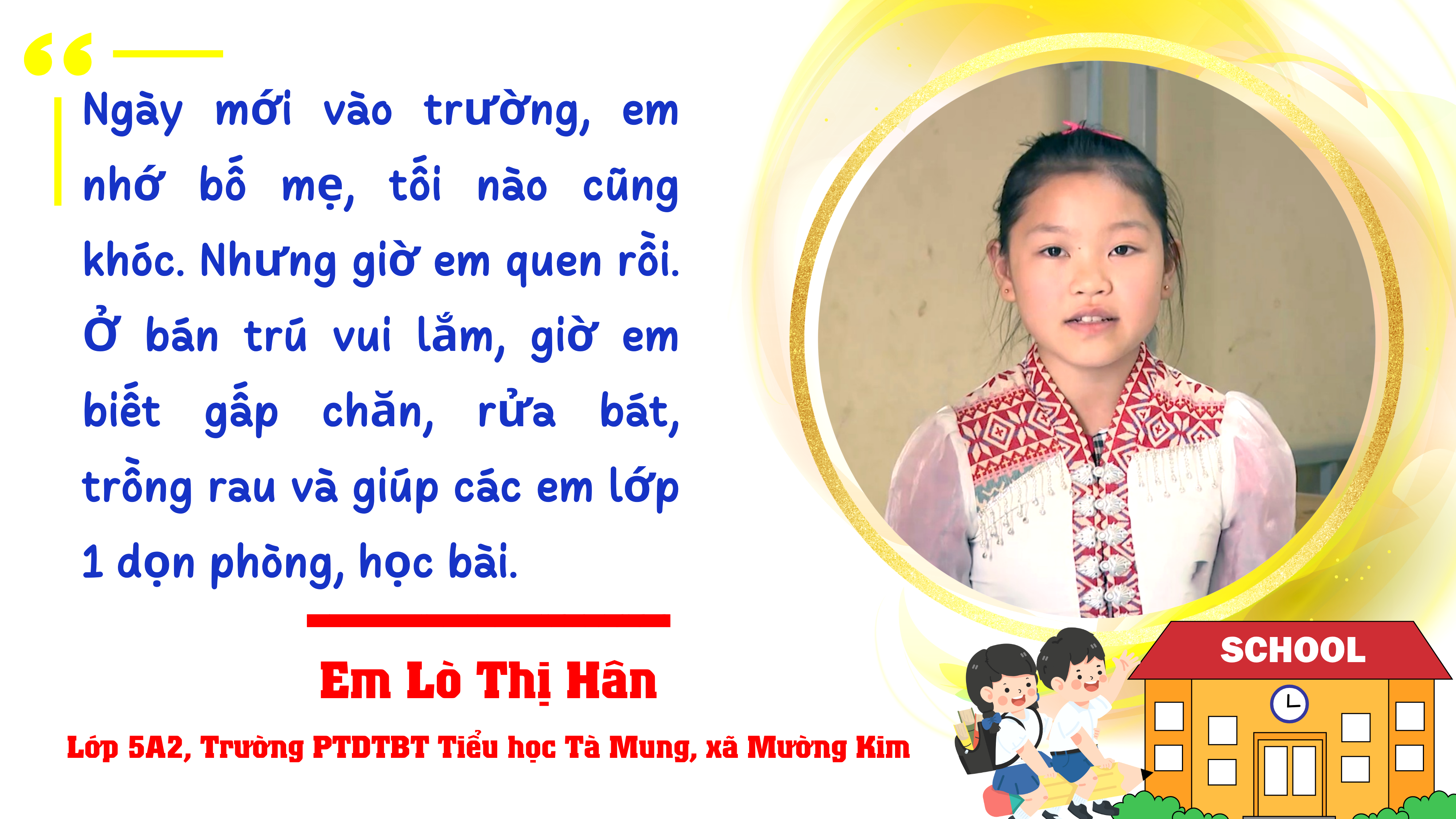 Cô giáo Lò Thị Tuyết (Trường Phổ thông DTBT Tiểu học Lản Nhì Thàng) cho biết: Chúng tôi xem giáo dục kỹ năng sống là một phần quan trọng trong môi trường bán trú. Học sinh không chỉ học kiến thức mà còn học cách làm người, cách bảo vệ bản thân và giúp đỡ người khác. Khi học sinh được tự tay làm, các em hiểu giá trị của sức lao động và biết trân trọng những điều giản dị trong cuộc sống. Những giờ lao động, vệ sinh trường lớp hay trồng rau đều là cơ hội để rèn luyện tinh thần trách nhiệm.