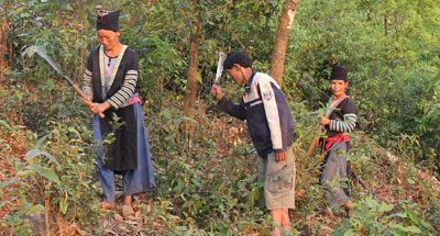 Nhân dân bản Cô Lô Hồ (xã tà tổng, huyện Mường Tè) phát đường băng cản lửa.