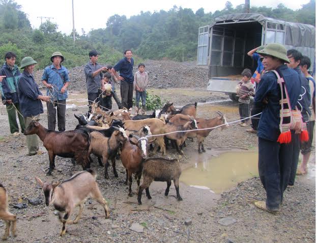 Các nhóm hộ dân xã Xà Dề Phìn nhận dê giống từ Hợp phần ngân sách phát triển xã (thuộc Dự án giảm nghèo) tại 6 xã vùng cao huyện Sìn Hồ.