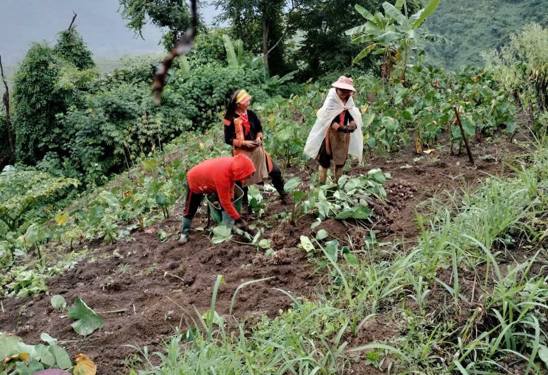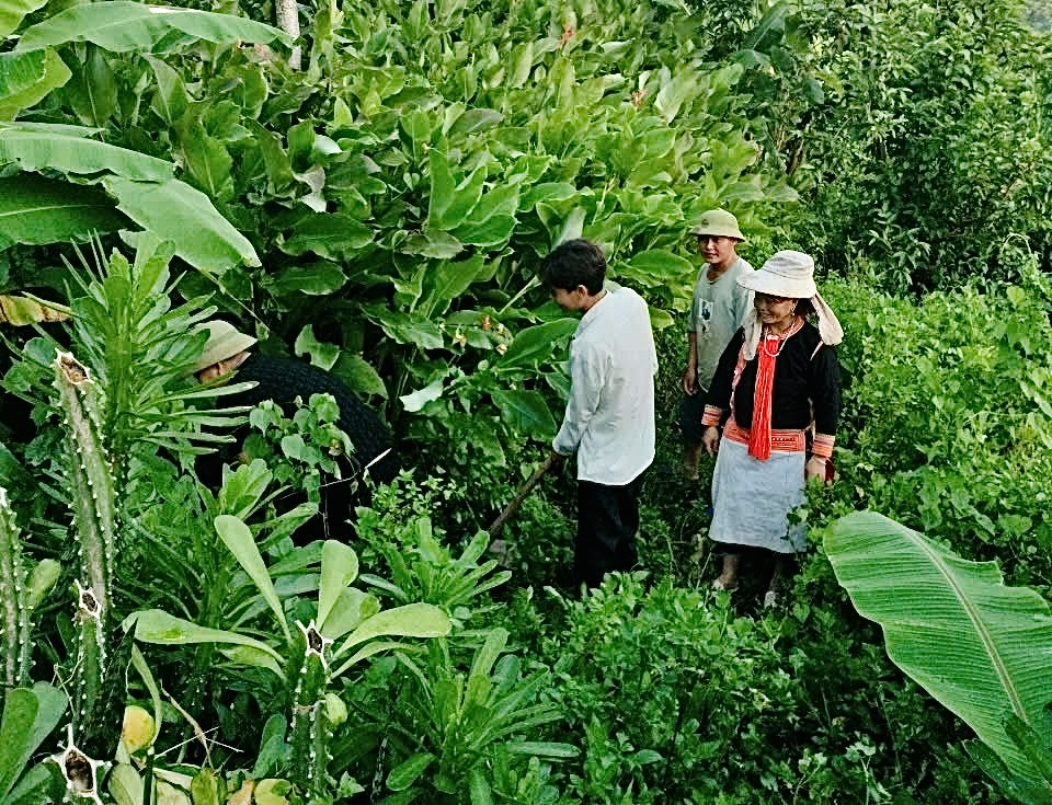 Người dân bản Dền Thàng chăm sóc dong riềng.