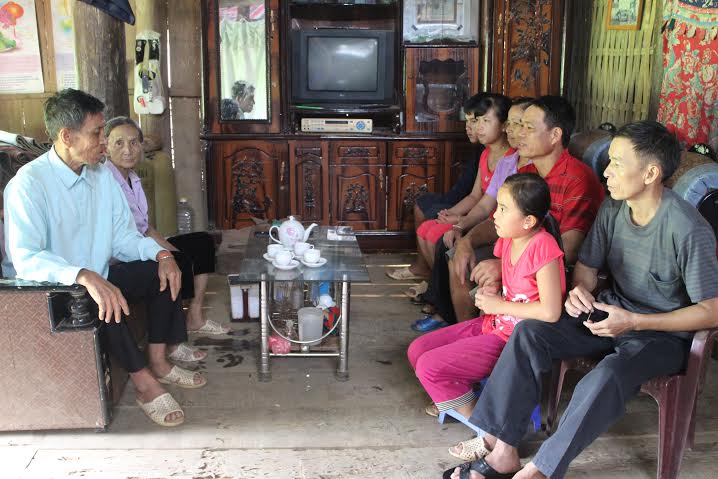 Ông Vàng Văn Dinh (thứ nhất bên trái) bản Huổi Én xã Mường So (Phong Thổ) vận động con cháu thực hiện tốt quy ước, hương ước của bản.