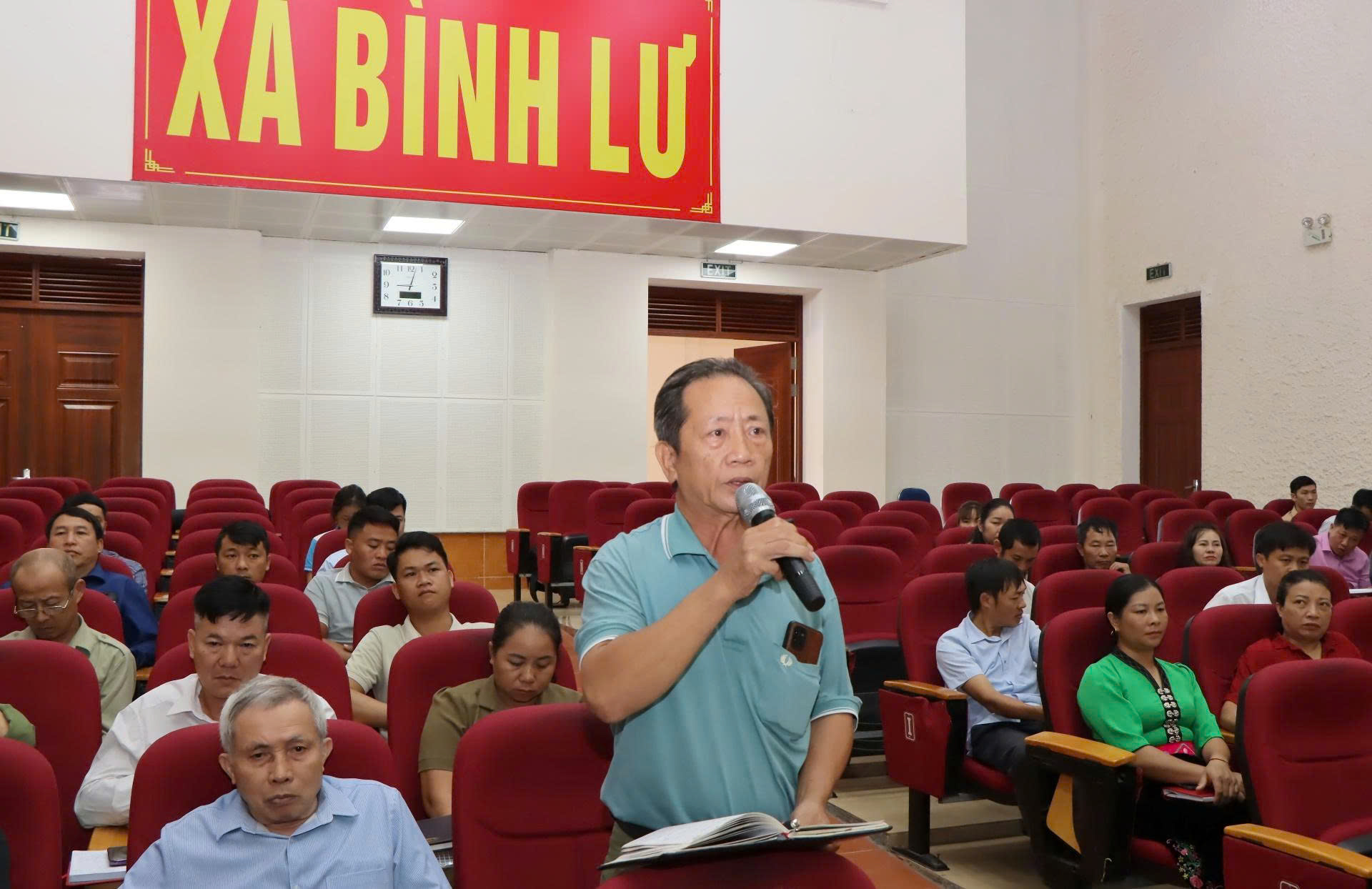 Cử tri xã Bình Lư kiến nghị tại Hội nghị tiếp xúc cử tri sau Kỳ họp thứ 9, Quốc hội khóa XV của Đoàn Đại biểu Quốc hội tỉnh.