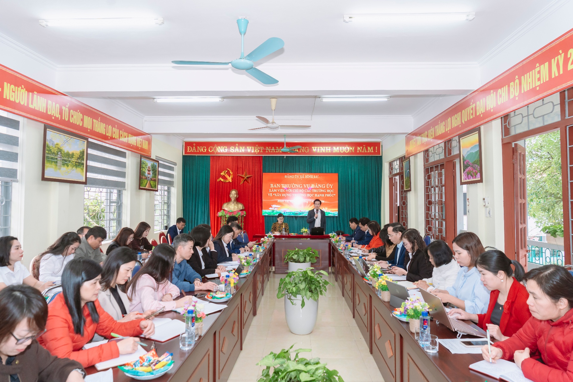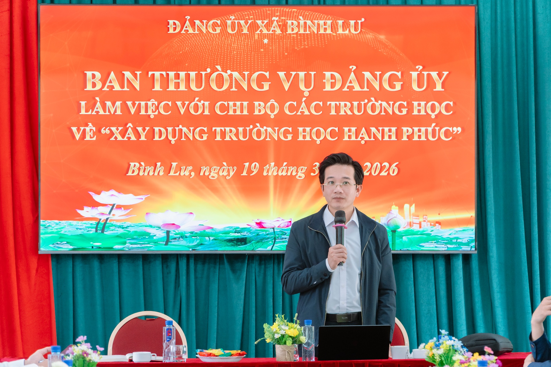 Ngày 19/3, Ban Thường vụ Đảng ủy xã Bình Lư tổ chức buổi làm việc với các cơ sở giáo dục trên địa bàn xã nhằm triển khai định hướng xây dựng “Trường học hạnh phúc”. Đồng chí Nguyễn Tiến Thịnh - Ủy viên Ban Chấp hành Đảng bộ tỉnh, Bí thư Đảng ủy, Chủ tịch HĐND xã chủ trì buổi làm việc.