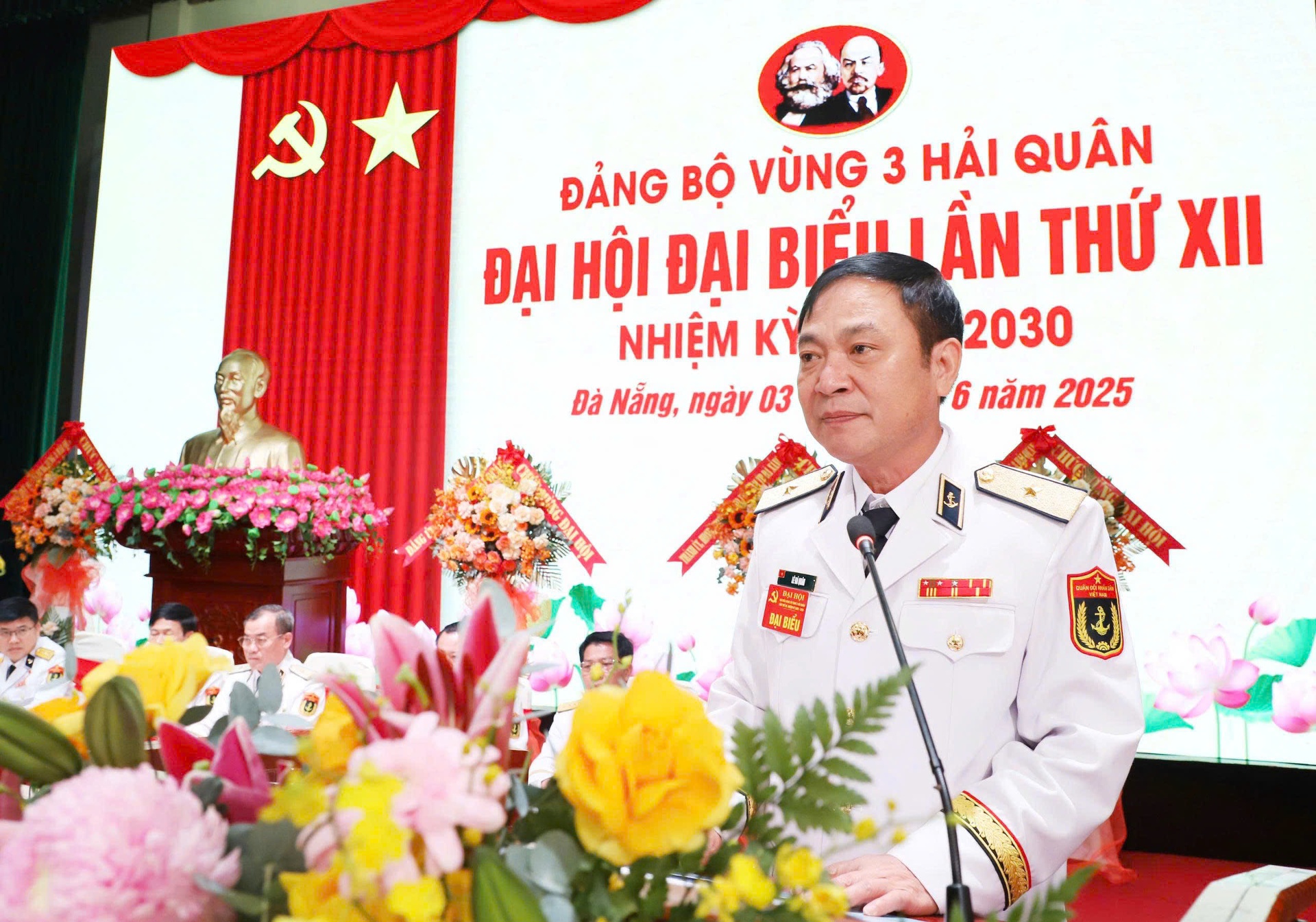 Trong 2 ngày (3 - 4/6), tại thành phố Đà Nẵng, Đảng bộ Vùng 3 Hải quân tổ chức Đại hội Đại biểu lần thứ XII, nhiệm kỳ 2025 - 2030. Dự và chỉ đạo Đại hội có đồng chí Chuẩn Đô đốc Lê Bá Quân - Ủy viên Đảng ủy, Phó Tư lệnh Quân chủng Hải quân. Cùng dự có đại diện Thủ trưởng Bộ Tham mưu, Cục Chính trị, Cục Hậu cần - Kỹ thuật Hải quân, các cơ quan chức năng Quân chủng Hải quân và 156 đại biểu, đại diện cho các tổ chức đảng trực thuộc trong toàn Đảng bộ Vùng.