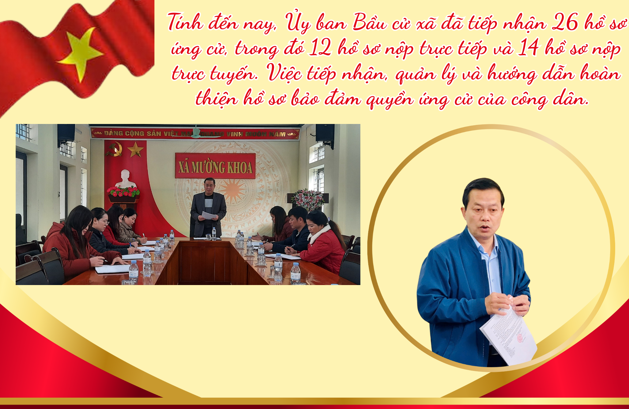 Theo ông Phan Văn Cương - Chủ tịch Ủy ban MTTQ Việt Nam xã Mường Khoa, công tác chuẩn bị bầu cử trên địa bàn xã được triển khai đúng tiến độ, bảo đảm dân chủ, công khai và quy định pháp luật. Các nhiệm vụ trọng tâm như: kiện toàn Ủy ban Bầu cử xã, xây dựng kế hoạch tổ chức bầu cử, thành lập các tổ bầu cử, thực hiện quy trình hiệp thương, tiếp nhận hồ sơ ứng cử, rà soát, lập danh sách cử tri và chuẩn bị cơ sở vật chất tại các khu vực bỏ phiếu đều được triển khai nghiêm túc, chặt chẽ. Công tác tuyên truyền được thực hiện linh hoạt, phù hợp với điều kiện thực tế của địa phương, góp phần nâng cao nhận thức, trách nhiệm của cử tri; các lực lượng chức năng chủ động bảo đảm an ninh chính trị, trật tự an toàn xã hội, không để phát sinh các vấn đề phức tạp liên quan đến bầu cử. Thời gian tới, xã Mường Khoa sẽ tiếp tục triển khai các bước tiếp theo theo đúng lộ trình, phấn đấu tổ chức thành công cuộc bầu cử, để ngày bầu cử thực sự trở thành ngày hội của toàn dân.