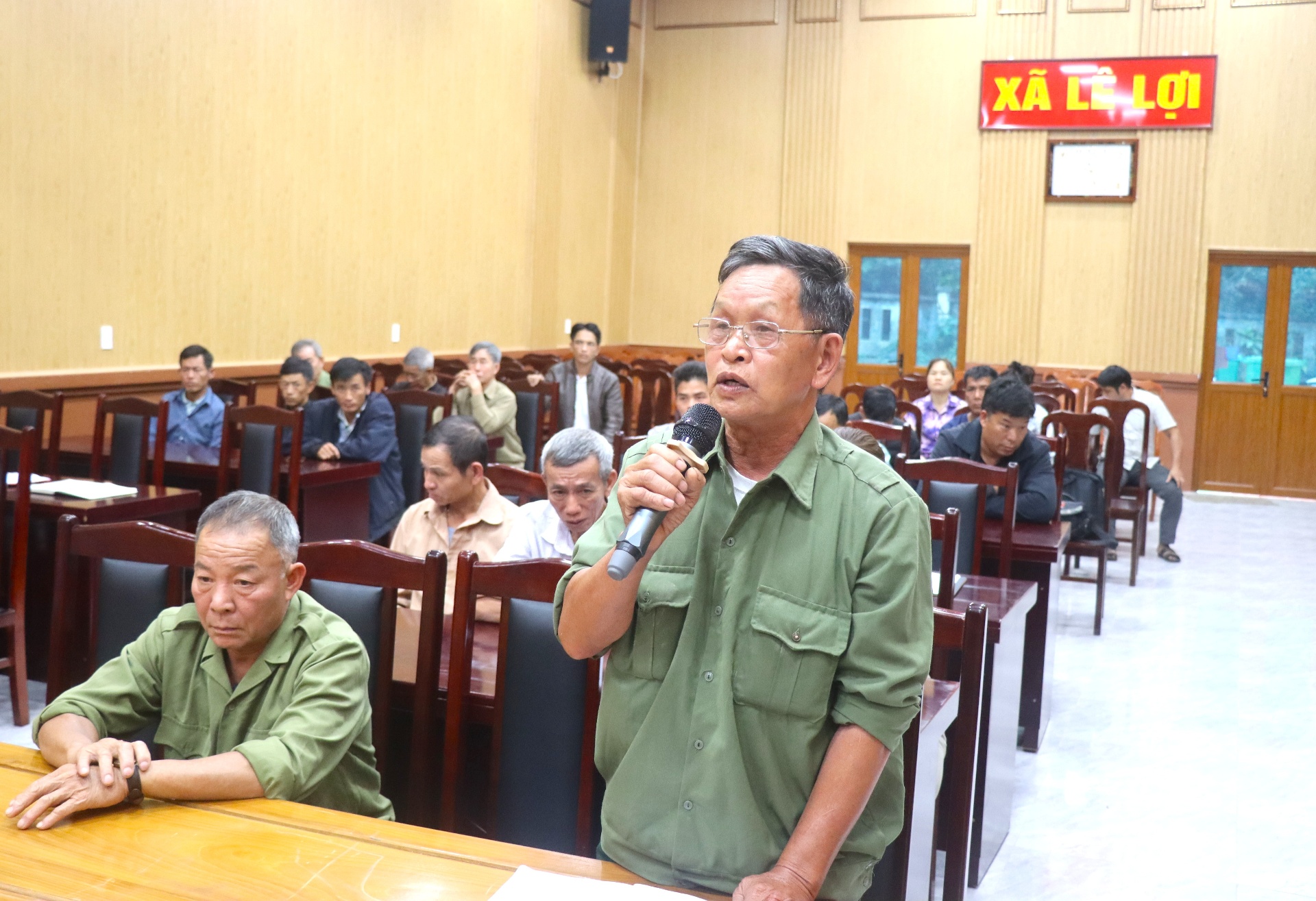Tại hội nghị, cử tri xã Lê Lợi đồng tình với chương trình hành động của các ứng cử viên. Nhiều ý kiến mong muốn, các ứng cử viên sau khi trúng cử sẽ: quan tâm đầu tư cơ sở vật chất cho xã; nâng cấp, xây dựng các công trình thủy lợi; hỗ trợ, giúp đỡ người yếu thế; chăm sóc sức khỏe nhân dân; đầu tư xây dựng trường trung học phổ thông tại xã; đầu tư các công trình nước sinh hoạt hợp vệ sinh; xây dựng chợ trung tâm xã, bến cảng; sắp xếp, ổn định dân cư vùng có nguy cơ sạt lở.