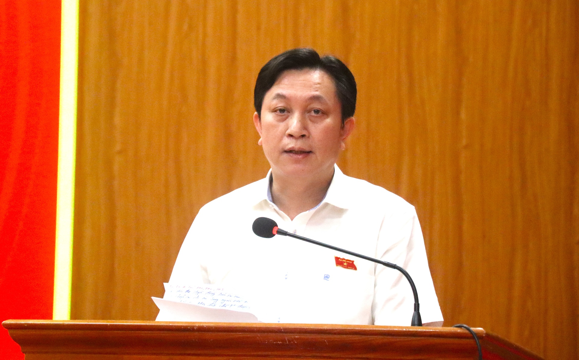 Đồng chí Lò Văn Cương - Uỷ viên Ban Thường vụ, Trưởng Ban Nội chính Tỉnh ủy, Trưởng Ban Pháp chế HĐND tỉnh trình bày chương trình hành động của mình nếu được bầu làm Đại biểu HĐND tỉnh.