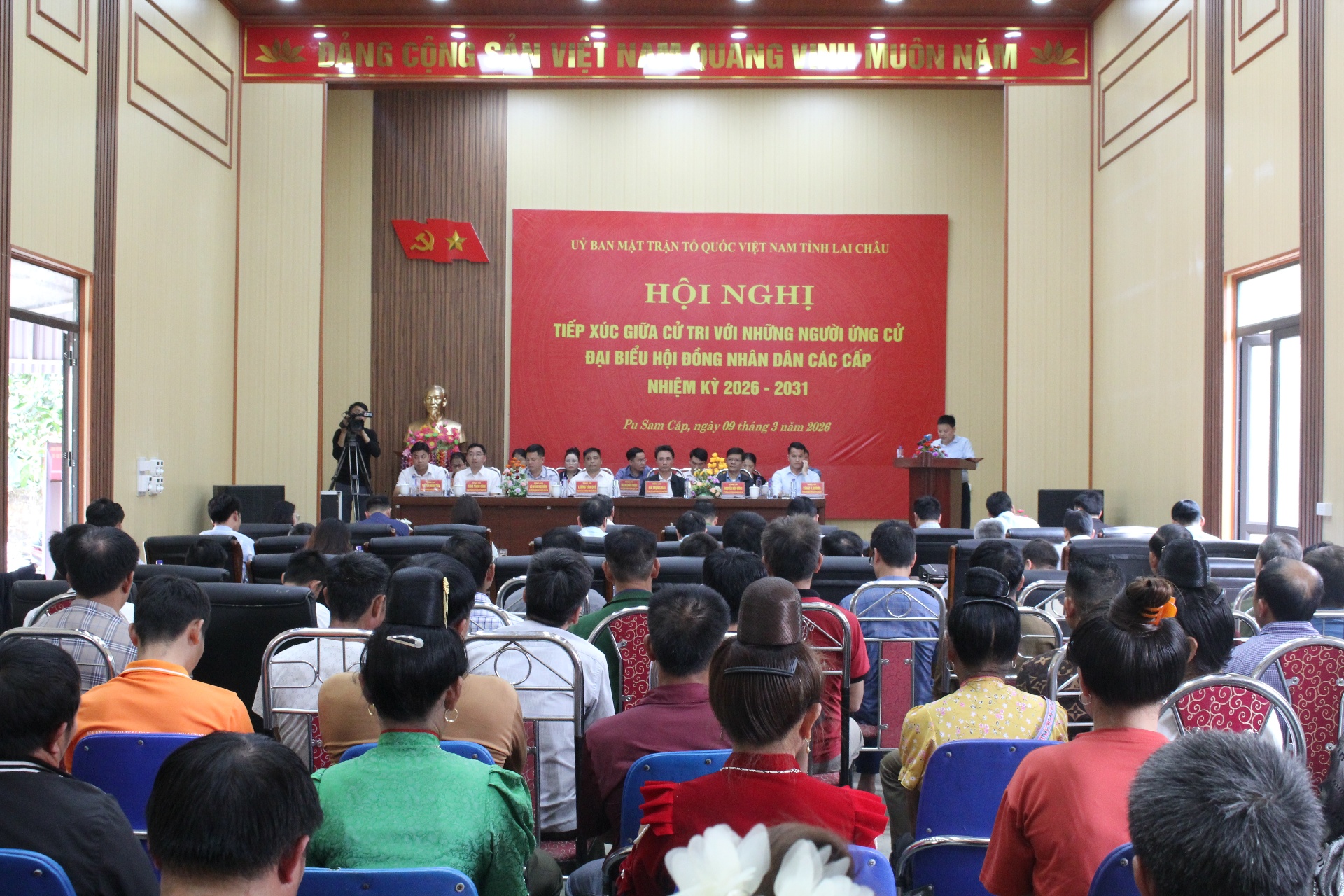 Chiều 9/3, Ban Thường trực Ủy ban Mặt trận Tổ quốc (MTTQ) Việt Nam tỉnh Lai Châu phối hợp với Đảng ủy, HĐND, UBND, Ủy ban Bầu cử và Ủy ban MTTQ Việt Nam xã Pu Sam Cáp tổ chức Hội nghị tiếp xúc cử tri với những người ứng cử đại biểu HĐND tỉnh nhiệm kỳ 2026–2031.