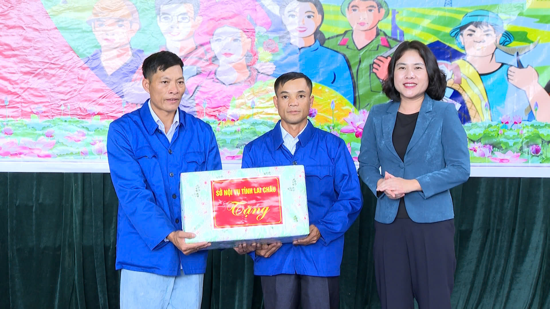 Đồng chí Đào Thị Lan Anh – Giám đốc Sở Nội vụ tặng quà cho đại diện bản Dền Thàng.
