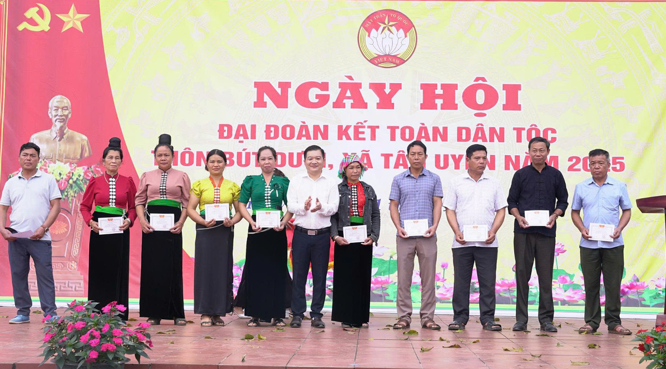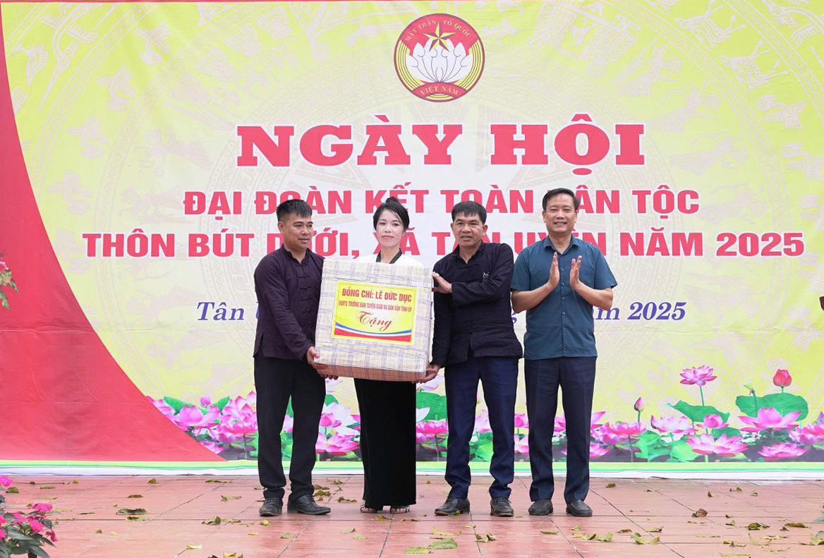 Sáng 11/11, đồng chí Lê Đức Dục - Ủy viên Ban Thường vụ, Trưởng Ban Tuyên giáo và Dân vận Tỉnh ủy đến dự Ngày hội Đại đoàn kết toàn dân tộc thôn Bút Dưới (xã Tân Uyên). Đây là thôn được chọn tổ chức ngày hội điểm của xã.