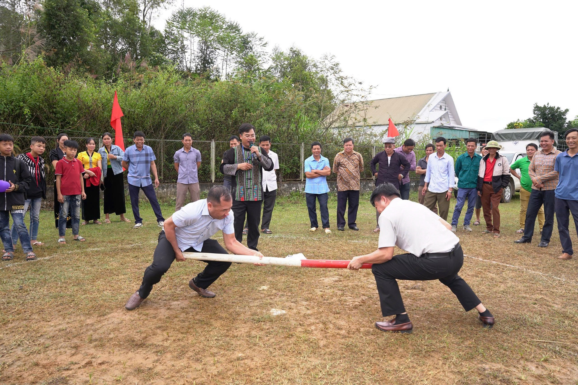Sau phần lễ, đồng chí Lê Đức Dục - Ủy viên Ban Thường vụ Tỉnh ủy, Trưởng Ban Tuyên giáo và Dân vận Tỉnh ủy cùng các đồng chí lãnh đạo xã, cán bộ, đảng viên và nhân dân tham gia phần hội với các trò chơi như: ném còn, đẩy gậy, bịt mắt bắt vịt.