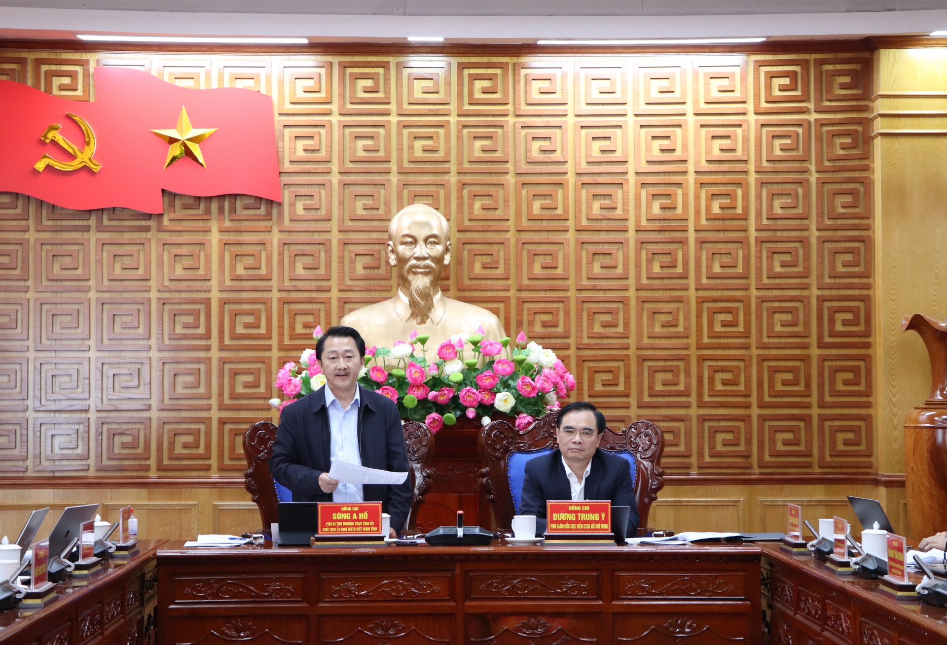 Phó Bí thư Thường trực Tỉnh ủy, Chủ tịch Ủy ban Mặt trận Tổ quốc Việt Nam tỉnh Sùng A Hồ phát biểu tại buổi làm việc.