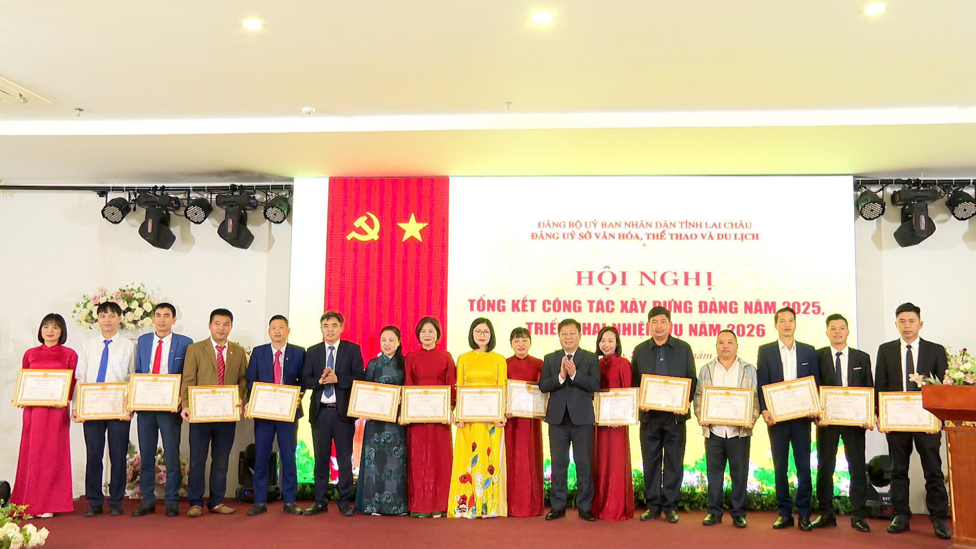 Tại hội nghị Đảng bộ Sở VHTT&DL tỉnh đã tặng giấy khen cho 1 tập thể, 17 đảng viên hoàn thành xuất sắc nhiệm vụ năm 2025