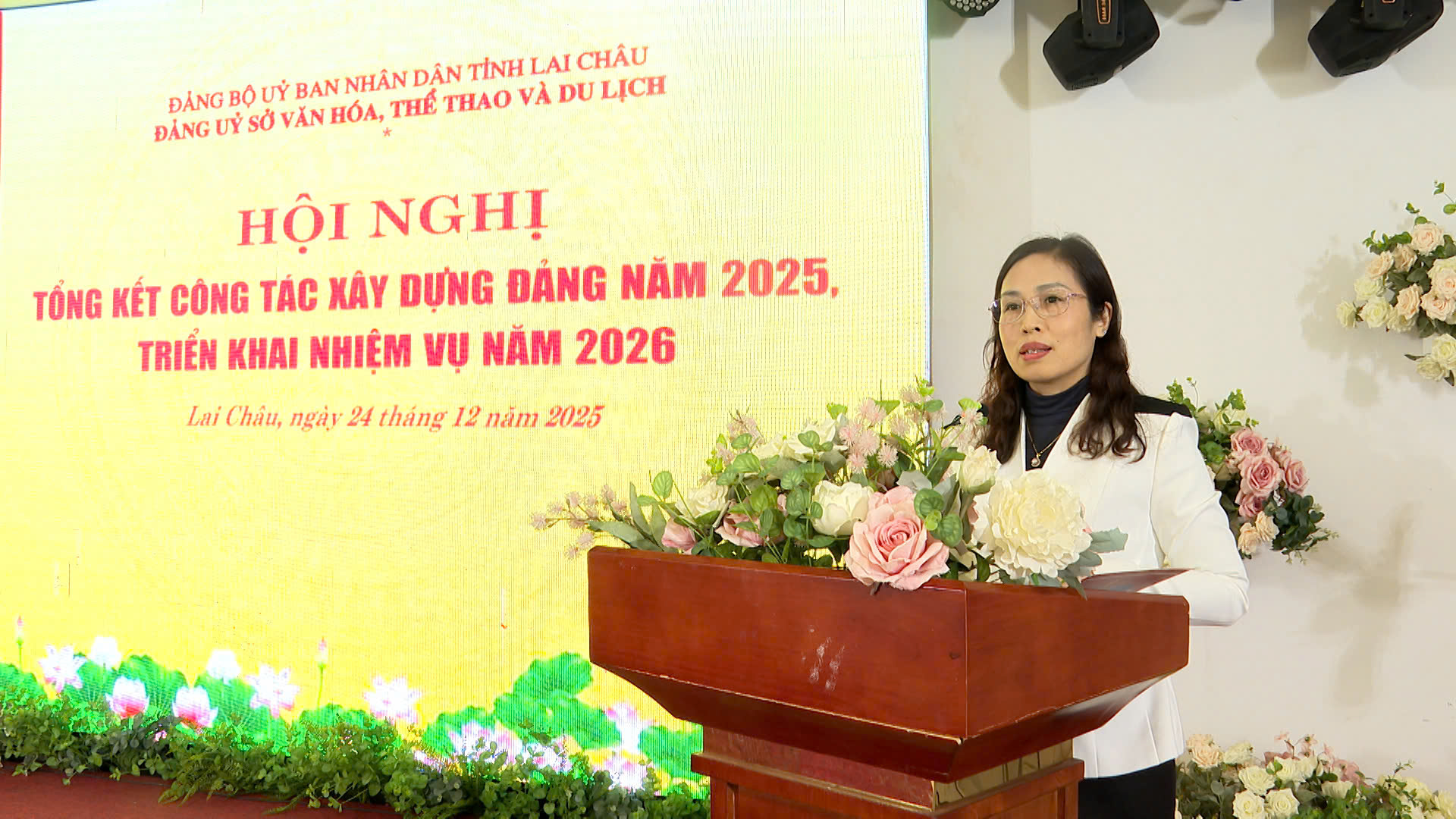 Chiều 24/12, Đảng bộ Sở Văn hóa, Thể thao và Du lịch (VHTT&DL) tỉnh tổ chức Hội nghị tổng kết công tác xây dựng Đảng năm 2025, triển khai nhiệm vụ trọng tâm năm 2026. Đồng chí Nguyễn Thị Hồng Tuyến - Phó Bí thư Đảng ủy UBND tỉnh dự và phát biểu chỉ đạo hội nghị. Dự hội nghị còn có 129 đảng viên thuộc 6 chi bộ trực thuộc.