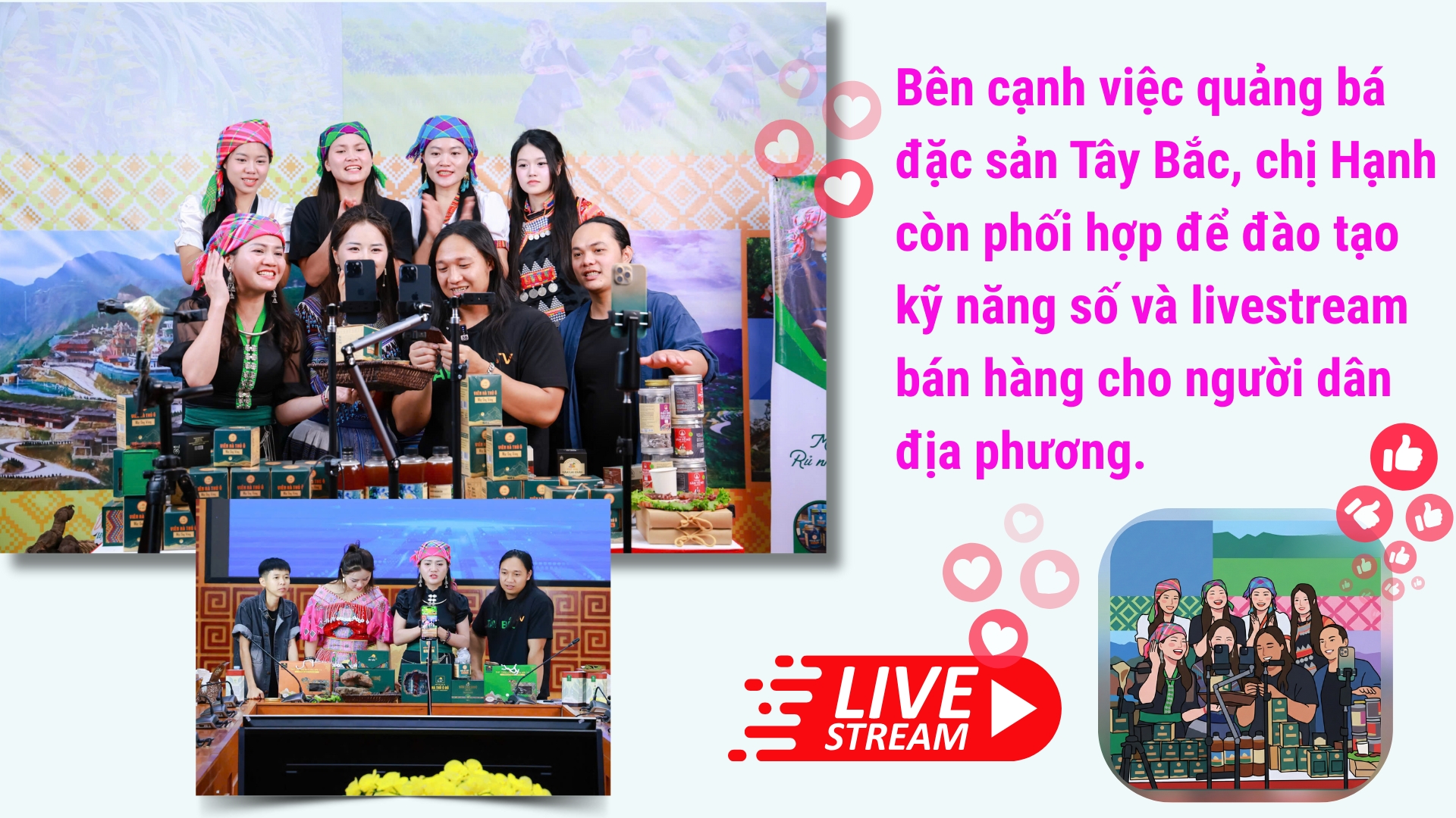 Chị không chỉ hướng dẫn cách livestream bán hàng, mà còn giúp người dân hiểu: muốn bán được hàng trên môi trường số thì phải giữ chữ tín, phải nói thật về sản phẩm, phải chăm sóc khách hàng. Những bài học ấy tuy giản dị nhưng lại là nền tảng quan trọng để kinh doanh bền vững. Sau các lớp tập huấn, nhiều chị em bắt đầu mạnh dạn bật livestream ngay tại gian bếp, trên nương đồi, bên khung cửi. Họ kể câu chuyện của mình bằng chính tiếng nói, hình ảnh đời thường, mộc mạc nhưng chân thật. Người mua không chỉ mua sản phẩm, mà còn mua câu chuyện của niềm tin và sự thật thà.