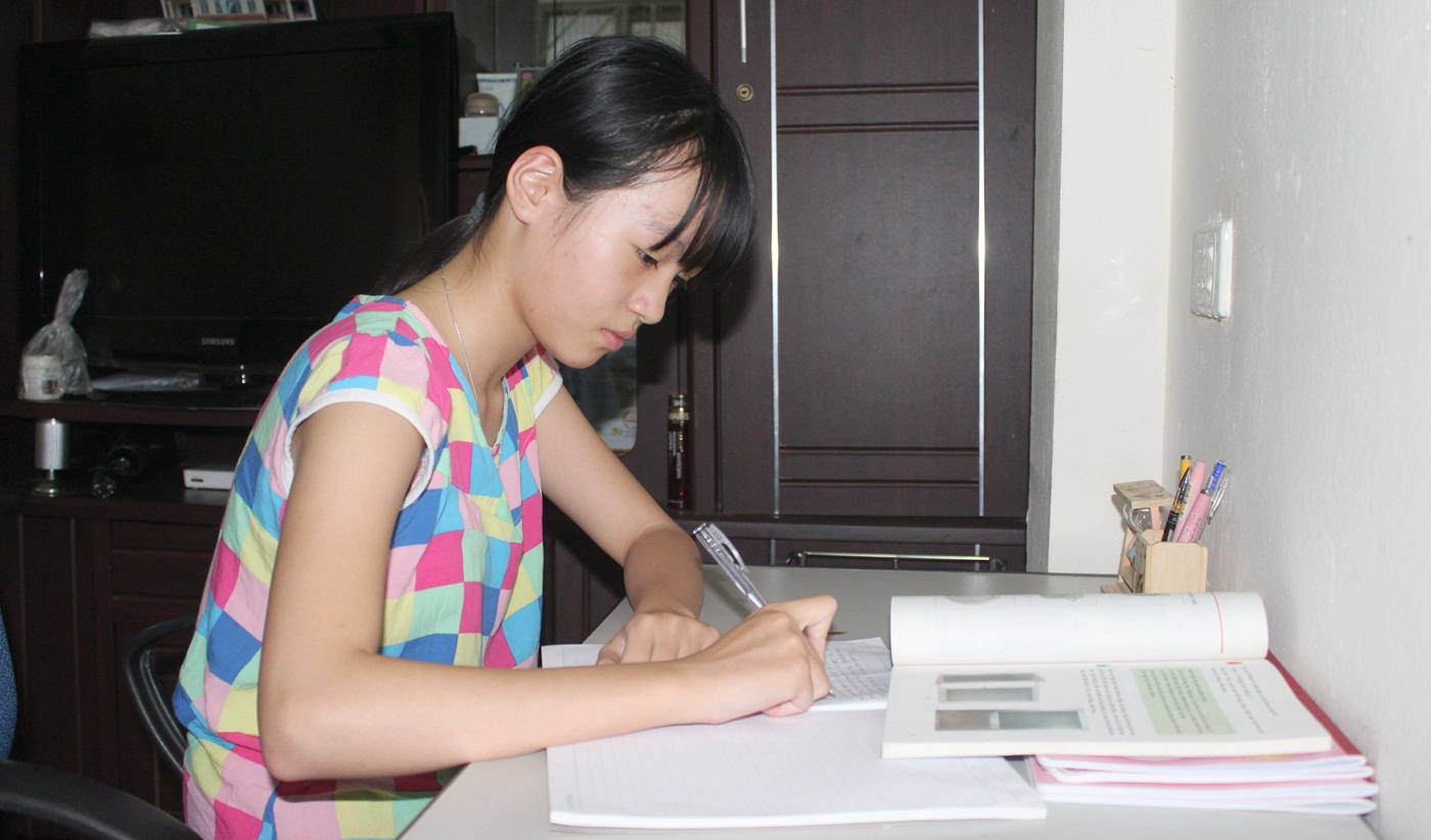 Em Lò Yến Nhi thường xuyên ôn bài trong dịp hè.