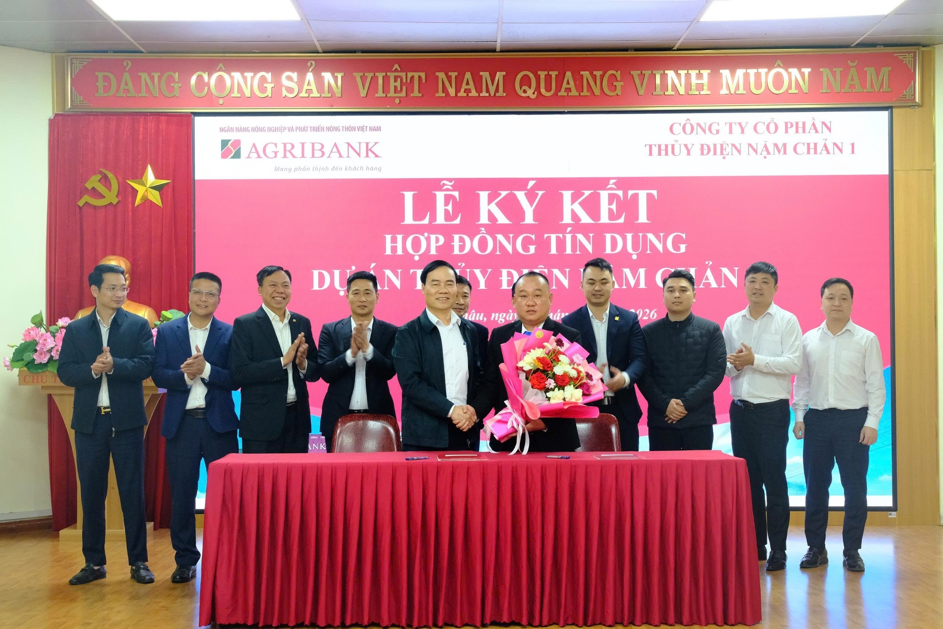 Chiều ngày 12/3, Ngân hàng Nông nghiệp và Phát triển Nông thôn Chi nhánh Lai Châu (Agribank Lai Châu) tổ chức lễ ký kết hợp đồng tín dụng Nhà máy Thủy điện Nậm Chản 1 do Công ty Cổ phần Thủy điện Nậm Chản 1 làm chủ đầu tư, với tổng mức đầu tư sau thuế là 205 tỷ đồng.