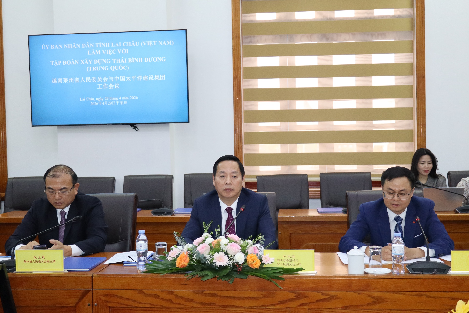 Tại buổi làm việc, ông Nghiêm Giới Hòa, người sáng lập Tập đoàn Xây dựng Thái Bình Dương cảm ơn sự đón tiếp nồng hậu của các đồng chí lãnh đạo tỉnh. Đồng thời khẳng định, thời gian qua, tập đoàn triển khai thành công nhiều dự án xây dựng hạ tầng giao thông ở các tỉnh, thành phía Bắc và nhận được sự đánh giá cao của cấp ủy, chính quyền các địa phương. Ông Nghiêm Giới Hòa nhận định, tỉnh Lai Châu là địa phương có nhiều tiềm năng, lợi thế để các doanh nghiệp, nhà đầu tư của Trung Quốc hợp tác triển khai các dự án, vì vậy, mong muốn tỉnh tạo điều kiện để Tập đoàn khảo sát và tìm kiếm cơ hội triển khai các dự án đầu tư xây dựng hạ tầng. Nếu có thể hợp tác triển khai dự án xây dựng tại Lai Châu, Tập đoàn cam kết sẽ đảm bảo chất lượng, tiến độ công trình. Phía Tập đoàn sẽ giao nhiệm vụ cụ thể cho từng cán bộ chủ chốt để kết nối, làm việc với các sở, ngành của tỉnh. Ông khẳng định, Tập đoàn Thái Bình Dương đến tìm hiểu cơ hội hợp tác đầu tư tại tỉnh Lai Châu với mong muốn cùng góp phần thúc đẩy kinh tế - xã hội, thu hút đầu tư của tỉnh Lai Châu.