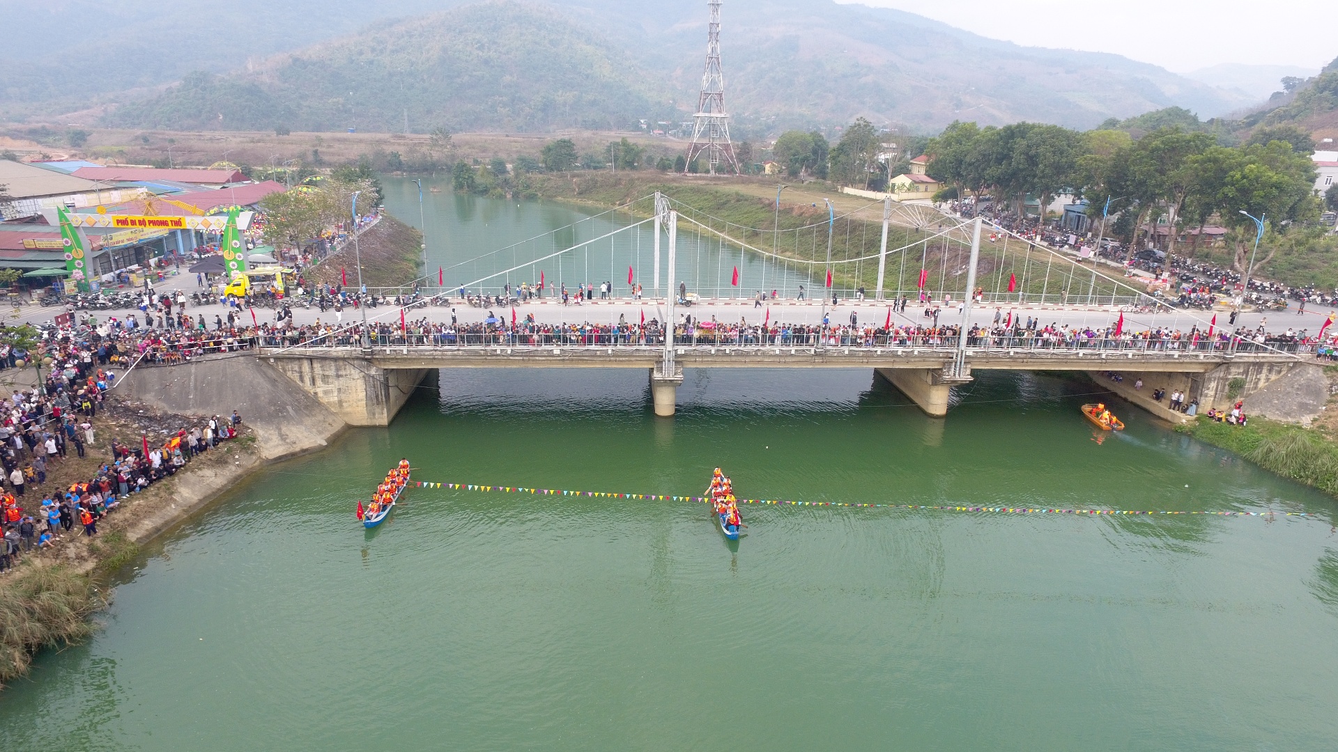 Người dân và du khách đến cổ vũ Lễ hội đua thuyền Pa So, thị trấn Phong Thổ năm 2025.