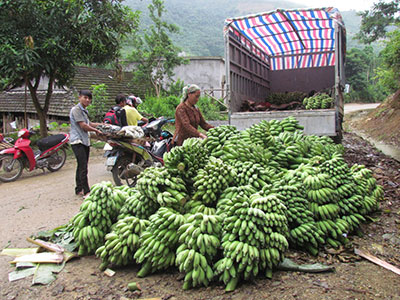 Người dân bản Nà Vàng, xã Bản Lang thu hoạch chuối bán sang thị trường Trung Quốc.