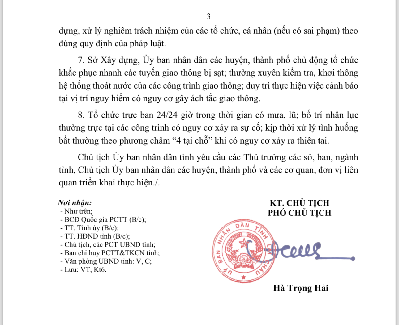 UBND tỉnh vừa ban hành Chỉ thị số 05/CT-UBND về công tác phòng, chống thiên tai và tìm kiếm cứu nạn năm 2025.
