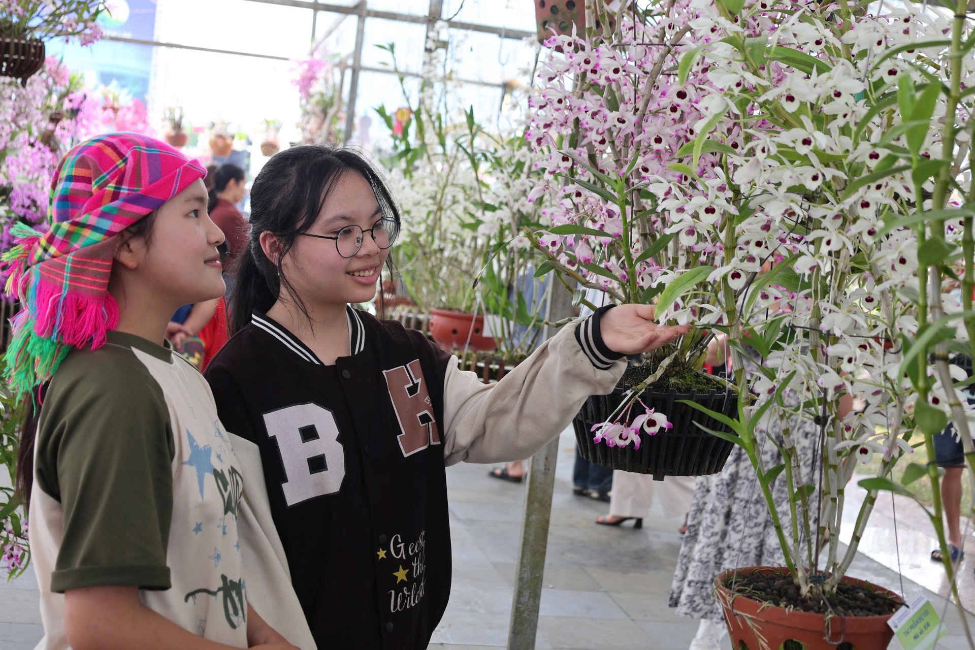 Du khách ngắm hoa lan.