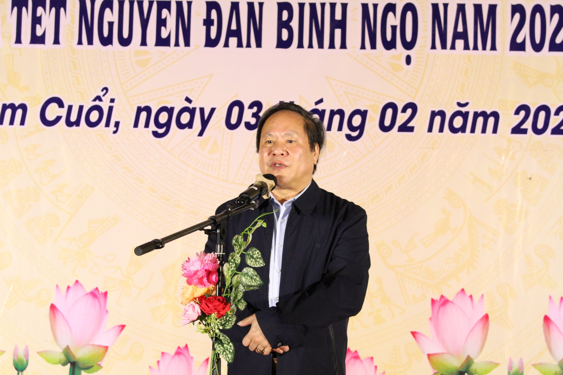 Phát biểu tại chương trình, đồng chí Tống Thanh Hải - Phó Chủ tịch Thường trực UBND tỉnh biểu dương tinh thần đoàn kết, sáng tạo của cấp ủy, chính quyền và nhân dân xã Nậm Cuổi trong việc tổ chức hoạt động văn hóa ý nghĩa, chào mừng thành công Đại hội Đại biểu toàn quốc lần thứ XIV của Đảng và Tết Nguyên đán Bính Ngọ 2026. Đồng thời gửi lời chúc mừng năm mới tốt đẹp nhất đến cấp ủy, chính quyền, MTTQ, cán bộ, đảng viên, lực lượng vũ trang và nhân dân xã Nậm Cuổi, mong muốn địa phương tiếp tục phát huy truyền thống đoàn kết, thi đua lao động sản xuất, thực hiện thắng lợi các nhiệm vụ phát triển kinh tế – xã hội trong năm mới.