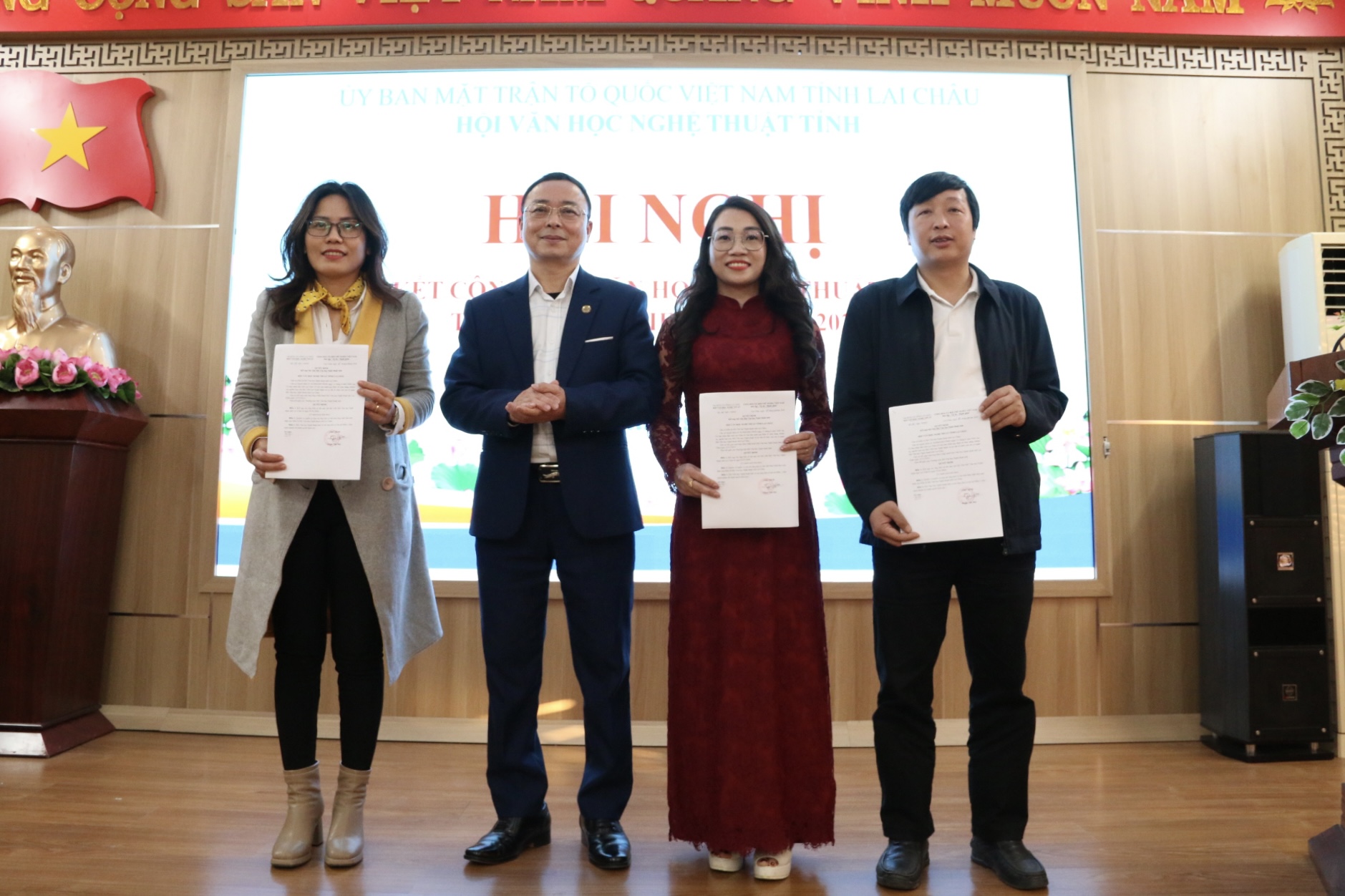 Nhân dịp này, Hội đã công bố quyết định kết nạp hội viên, tặng giấy khen cho 2 tập thể gồm: Chi hội Văn học Nghệ thuật các Dân tộc thiểu số Việt Nam tỉnh Lai Châu; Chi hội Hội Nhạc sĩ Việt Nam tỉnh Lai Châu và 10 cá nhân có thành tích nổi bật, hoạt động sôi nổi trong năm 2025.