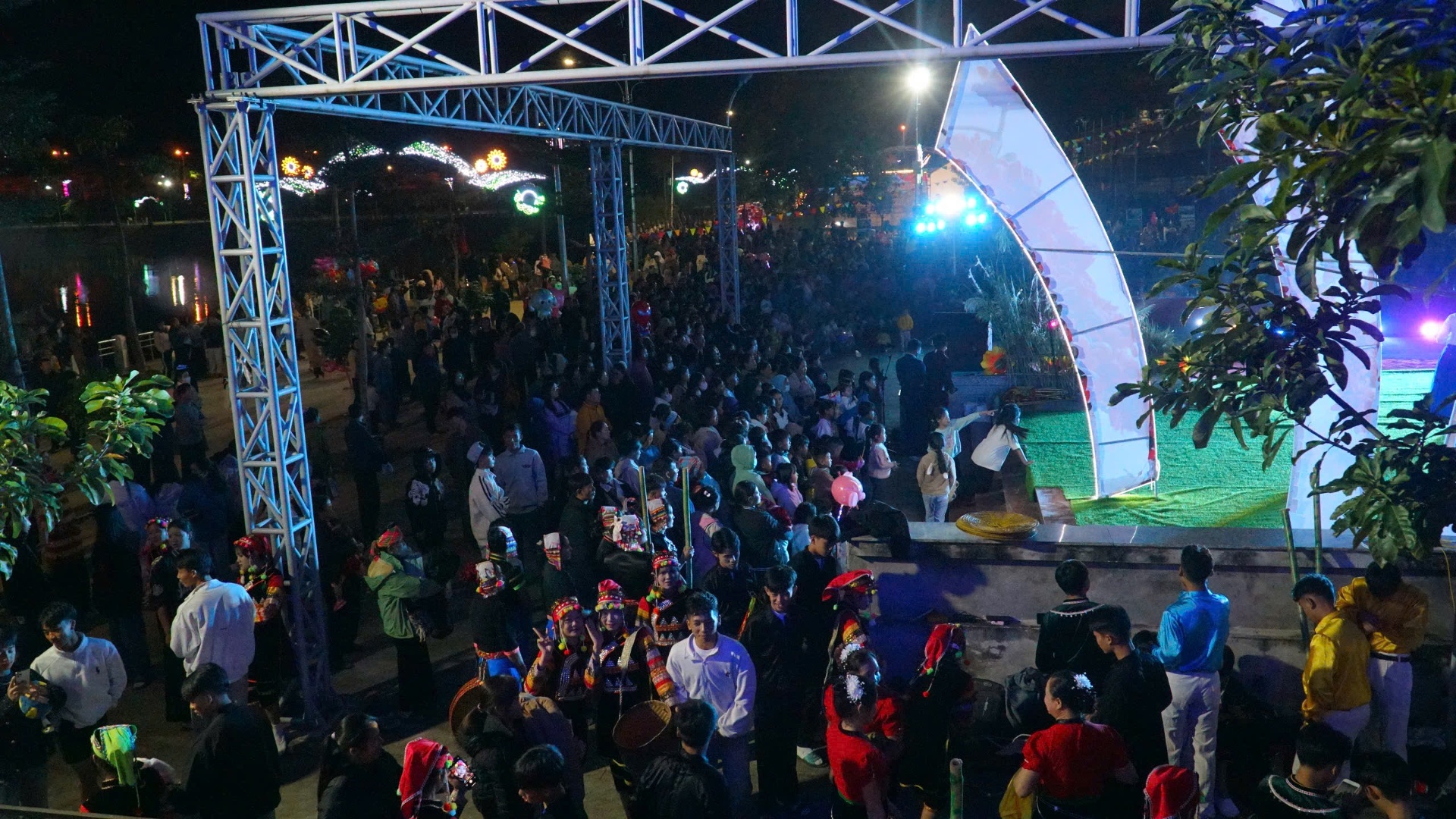 Đông đảo nhân dân và du khách đến xem chương trình văn nghệ tại đêm khai mạc Ngày hội.