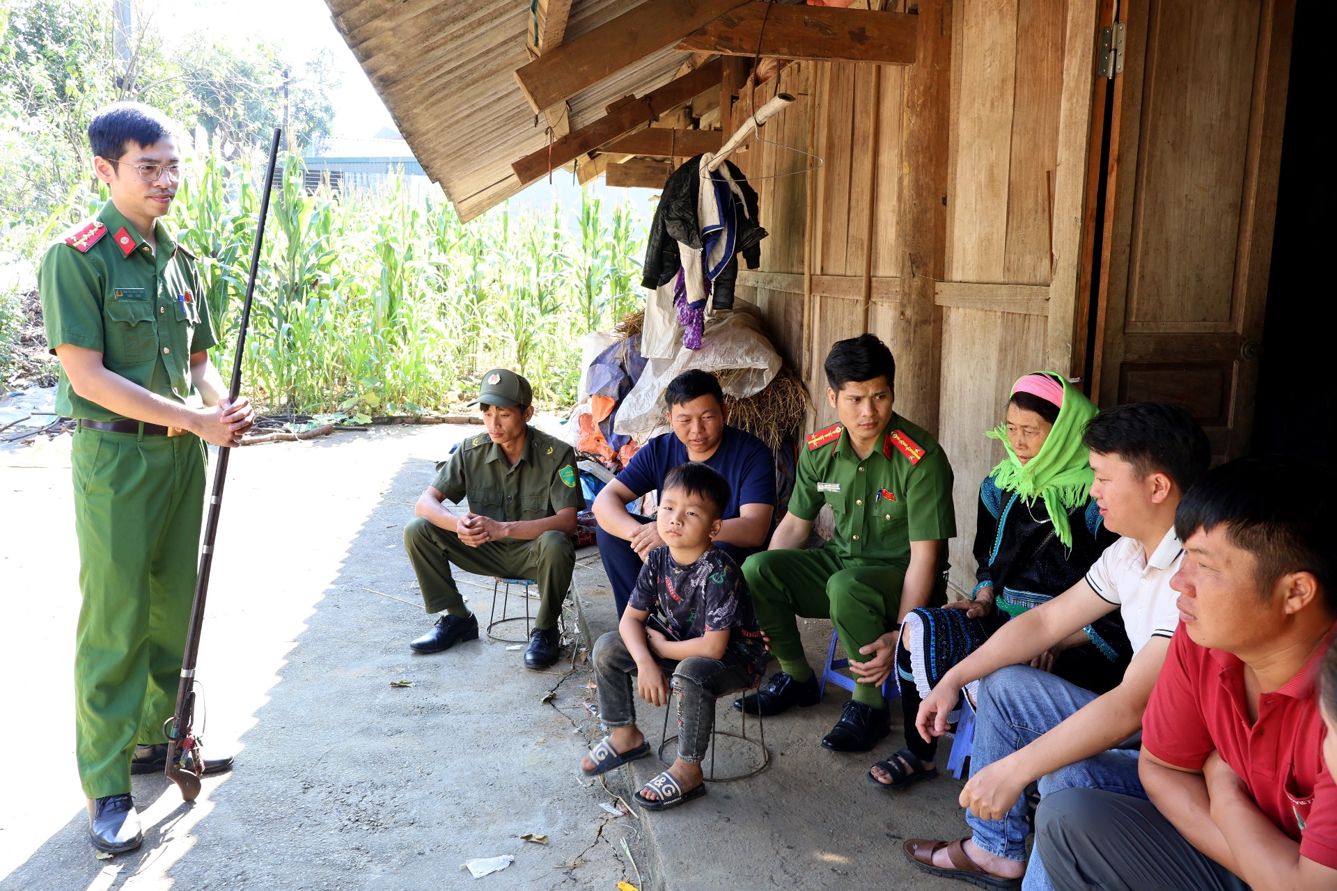 Công tác tuyên truyền được lực lượng công an trực tiếp, phối hợp tổ chức bằng nhiều hình thức phong phú, linh hoạt, gắn với đặc điểm từng địa bàn, từng dân tộc. Ở các xã có đồng bào dân tộc Mông sinh sống, nơi vẫn còn tồn tại tập quán sử dụng súng trong lễ tang, các anh chọn cách tuyên truyền mềm dẻo, tôn trọng bản sắc văn hóa, hướng dẫn người dân thay thế bằng hình thức tưởng niệm an toàn, văn minh hơn.