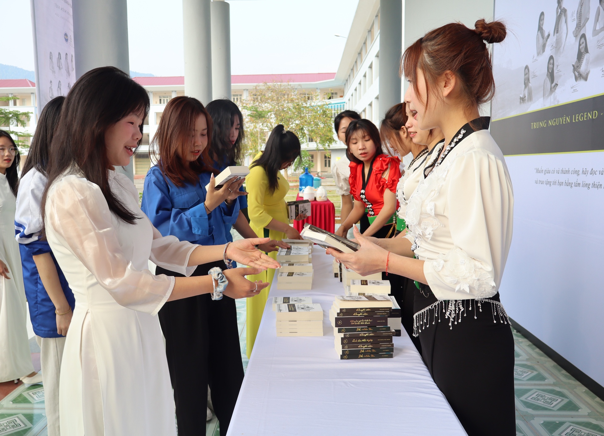 Đại diện Tập đoàn Trung Nguyên Legend tặng sách cho nhà trường và học sinh, sinh viên.