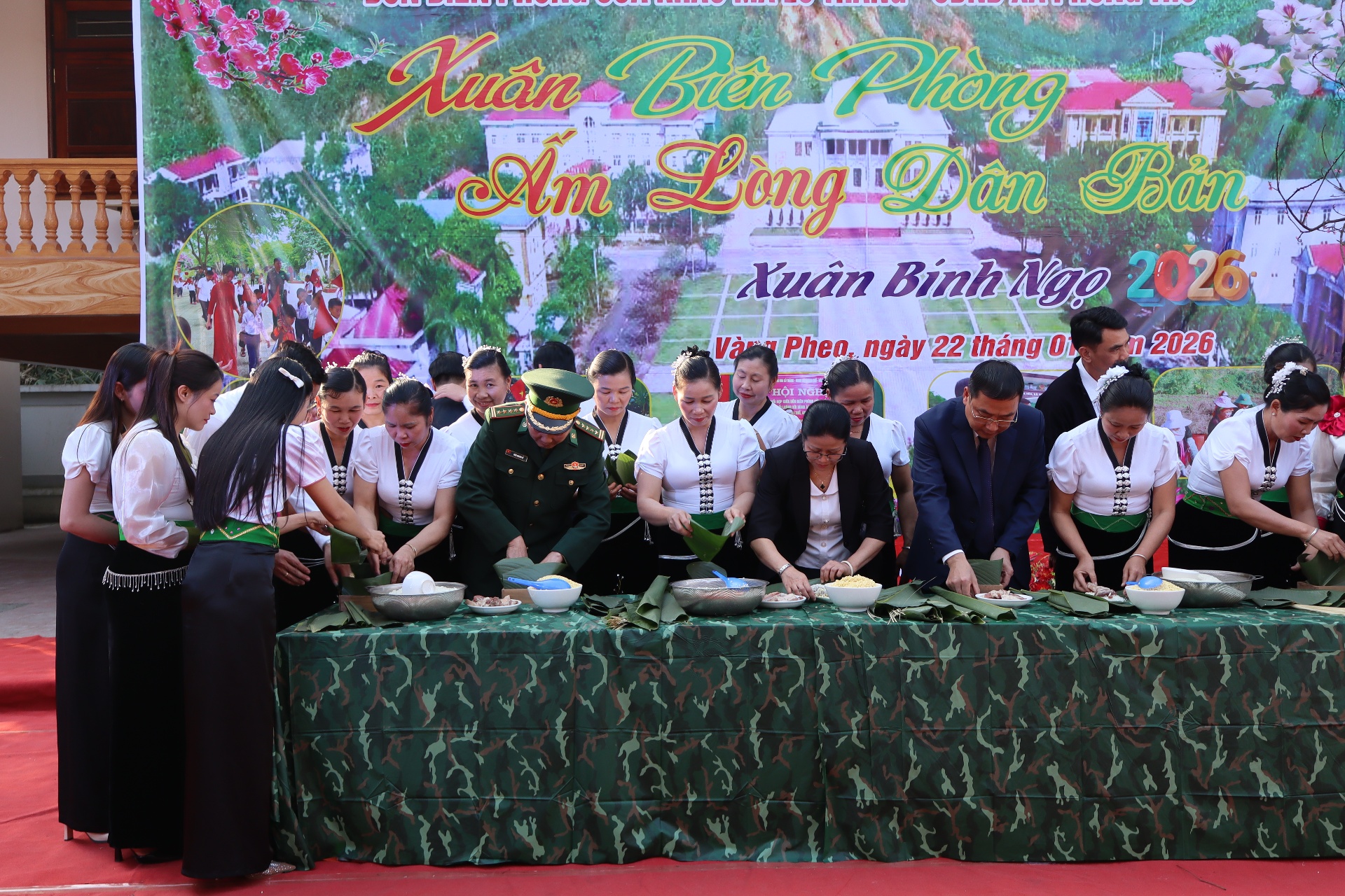 Chương trình diễn ra trong không khí vui tươi, đầm ấm với nhiều hoạt động ý nghĩa như: giao lưu văn nghệ, trao quà tết cho nhân dân, tặng điện thoại thông minh, tổ chức “Gian hàng 0 đồng”, khám bệnh, cấp thuốc miễn phí, hướng dẫn cài đặt điện thoại, chơi các trò chơi dân gian và gói bánh chưng cùng bộ đội biên phòng.