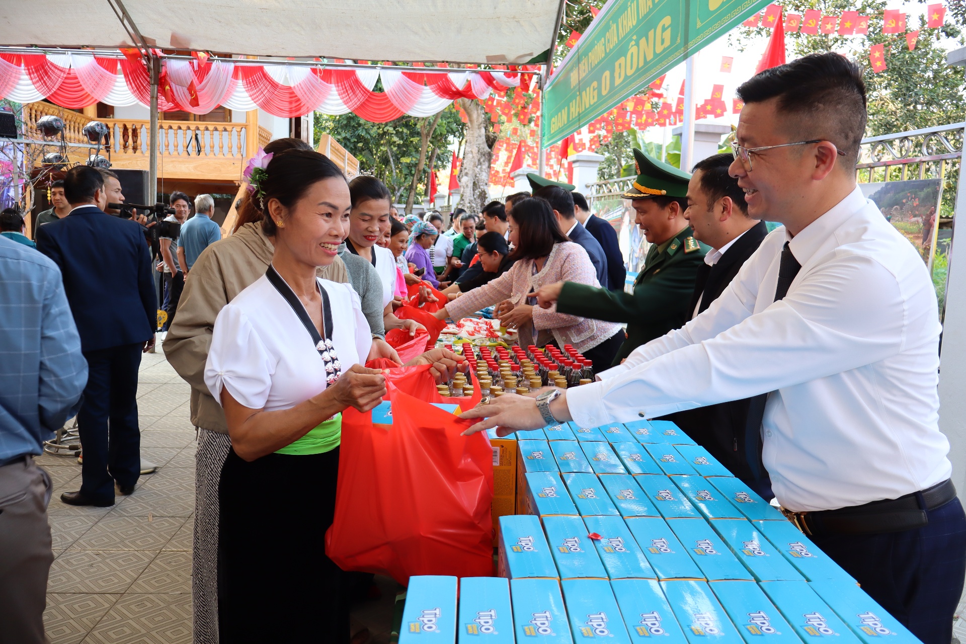 Bà con bản Vàng Pheo nhận quà 0 đồng.