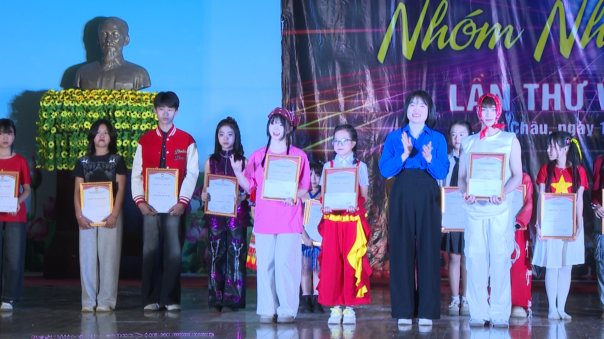 Đại diện lãnh đạo Tỉnh đoàn trao giải nhất cho 3 đội thi.