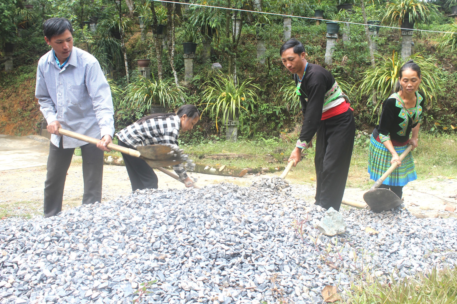 Nhân dân xã Sin Suối Hồ góp công làm đường giao thông nông thôn.