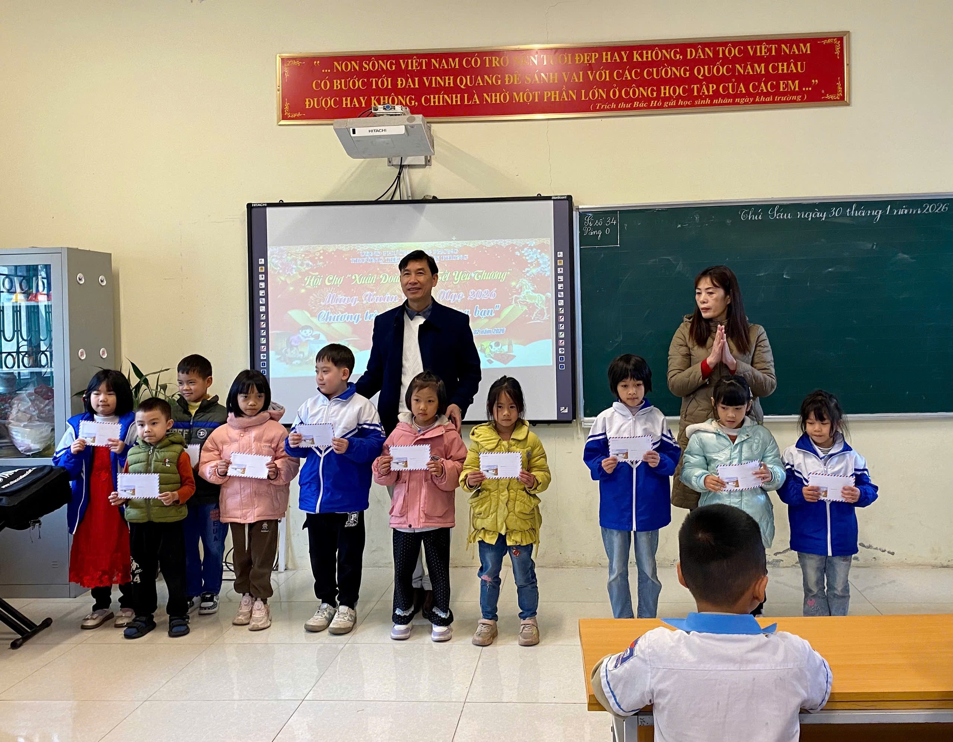 Nhân dịp này, nhà trường đã trao 57 suất quà, trong đó 1 suất trị giá 3 triệu 441 nghìn đồng, 7 suất trị giá 2 triệu đồng, 3 suất trị giá 1 triệu 500 nghìn đồng, 46 suất trị giá 550 nghìn đồng cho các em học sinh có hoàn cảnh khó khăn, góp phần động viên, khích lệ các em vươn lên trong học tập và vui xuân an toàn.