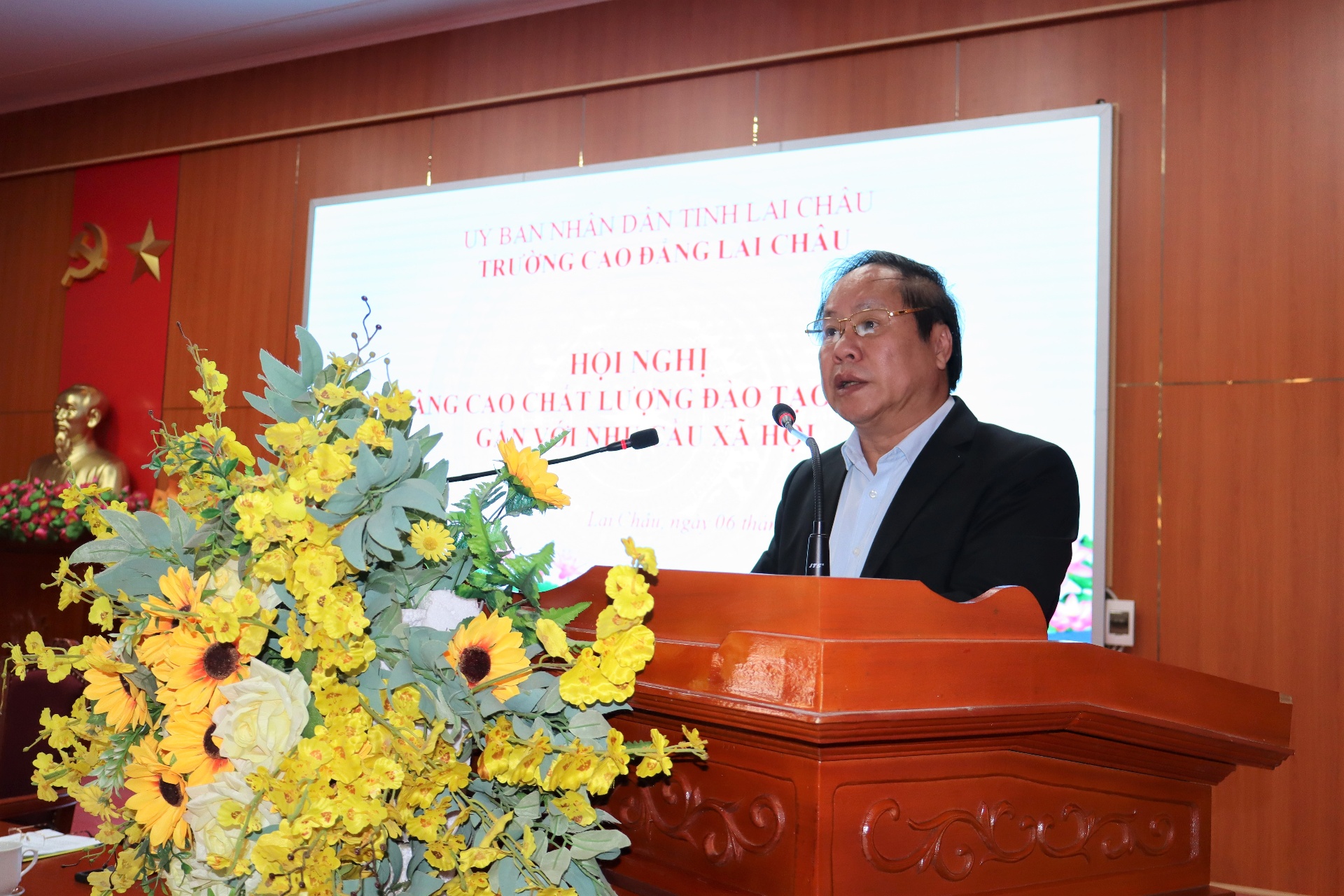 Chiều 6/3, Trường Cao đẳng Lai Châu tổ chức Hội nghị nâng cao chất lượng đào tạo nghề gắn với nhu cầu xã hội giai đoạn 2020-2025, giải pháp nâng cao chất lượng đào tạo nghề gắn với nhu cầu xã hội giai đoạn 2026-2030. Dự và chỉ đạo có đồng chí Tống Thanh Hải - Ủy viên Ban Thường vụ Tỉnh ủy, Phó Chủ tịch Thường trực UBND tỉnh. Đại diện lãnh đạo Sở Giáo dục và Đào tạo, Ban Tuyên giáo và Dân vận Tỉnh ủy, lãnh đạo phường Đoàn Kết, các xã: Than Uyên, Khổng Lào, Mường Kim, Phong Thổ, Dào San… dự.