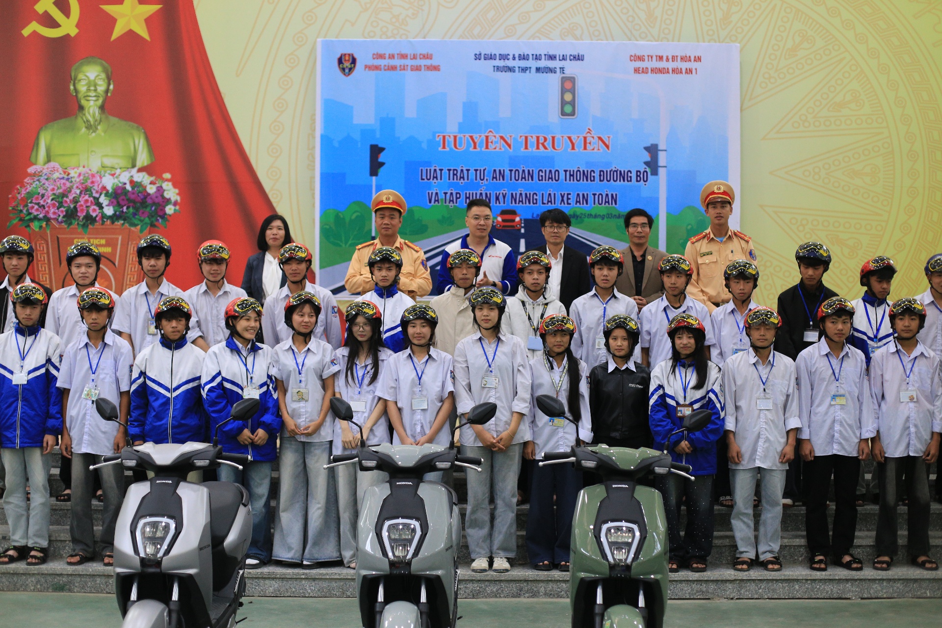 Dịp này, Công ty Thương mại và Đầu tư Hòa An đã trao tặng 30 chiếc mũ bảo hiểm, 3 chiếc xe máy điện (Honda icon) và 20 phần quà cho học sinh.